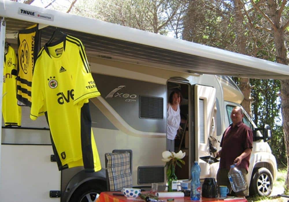 A 6-kilometer drive from Erdek town, Camping Ant is situated in Erdek Bay on the southern coast of the Marmara Sea. The camping area is sheltered by pine trees, and we have a secluded sandy beach. There are electrical outlets available for campers. Wind surfing is a great activity in the predominately northerly breezes from the land.