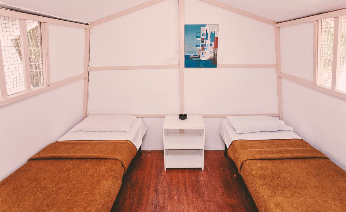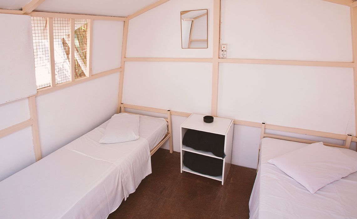 Our simple cabins are built from wood and are situated on extensive landscaped grounds with pleasant areas to relax and enjoy. They accommodate one or two people. Communal showers and bathrooms are in the surrounding area.