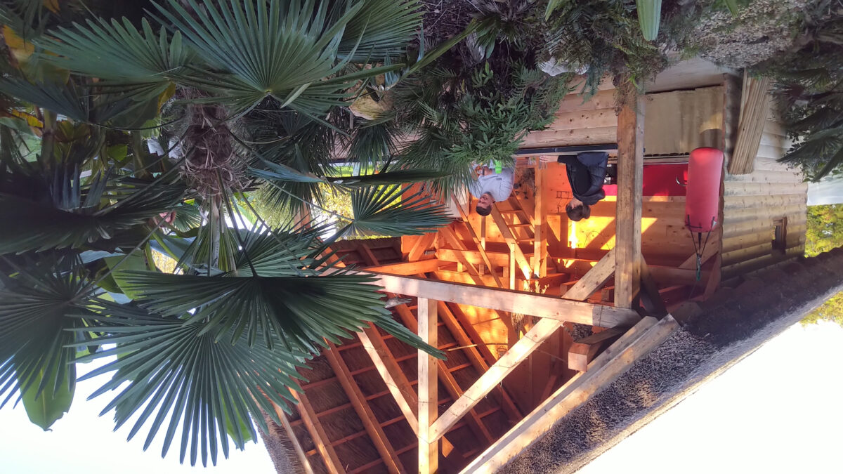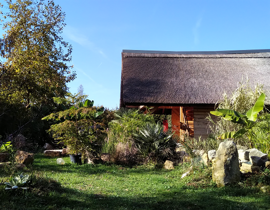 Our campsite features the fully equipped “Megi” unit, a wooden thatched cottage with an outdoor kitchen and dining area, two separate sanitary units, and an outdoor sink. The entire camp area spans roughly 3 hectares, enclosed and brimming with botanical wonders and friendly animals, both wild and domestic. Enjoy ponds, fruit orchards, shady groves, and sun-drenched meadows at your leisure, with walking paths open from 9:00 to 21:00 and guarded by dogs at night.