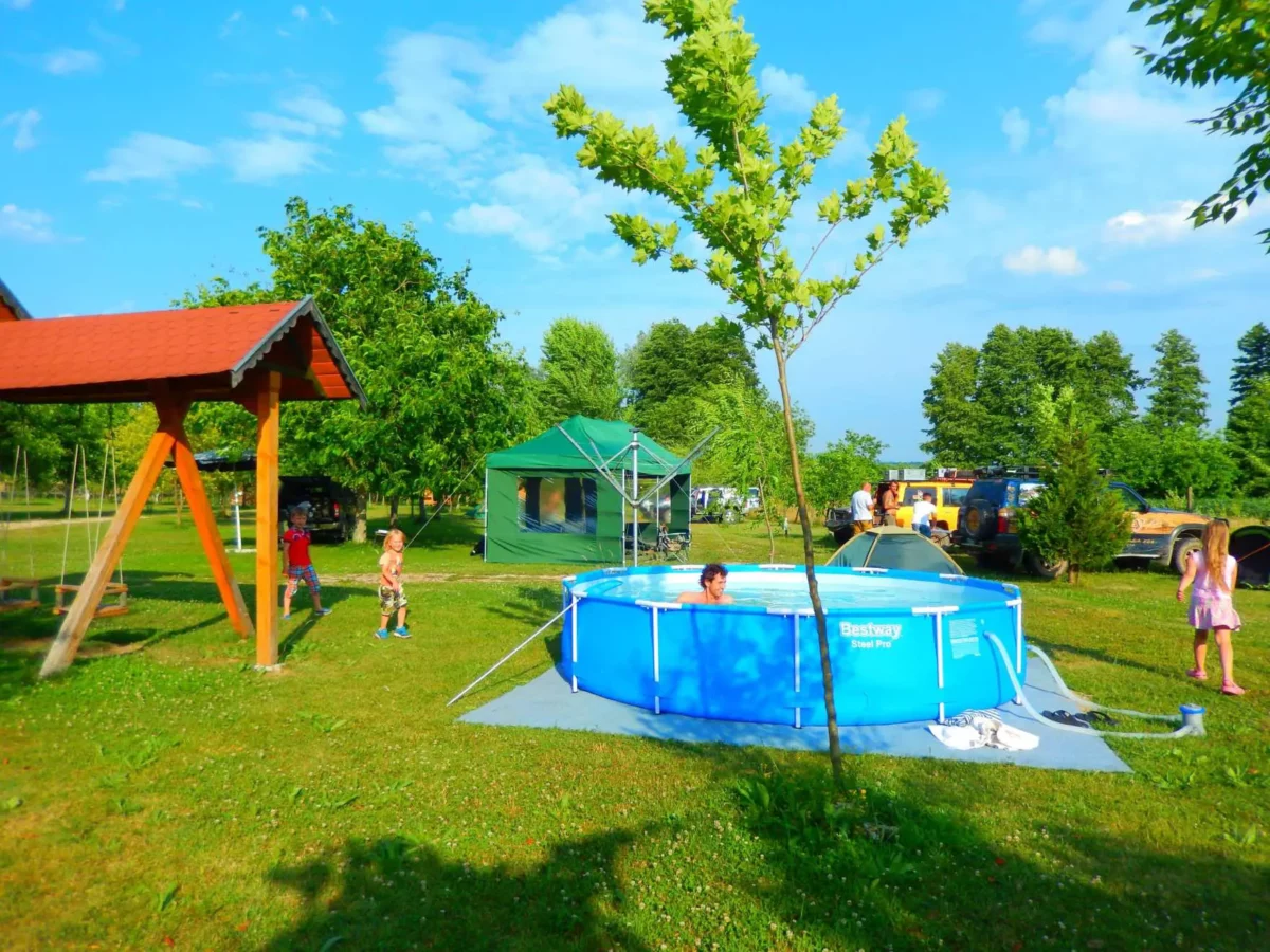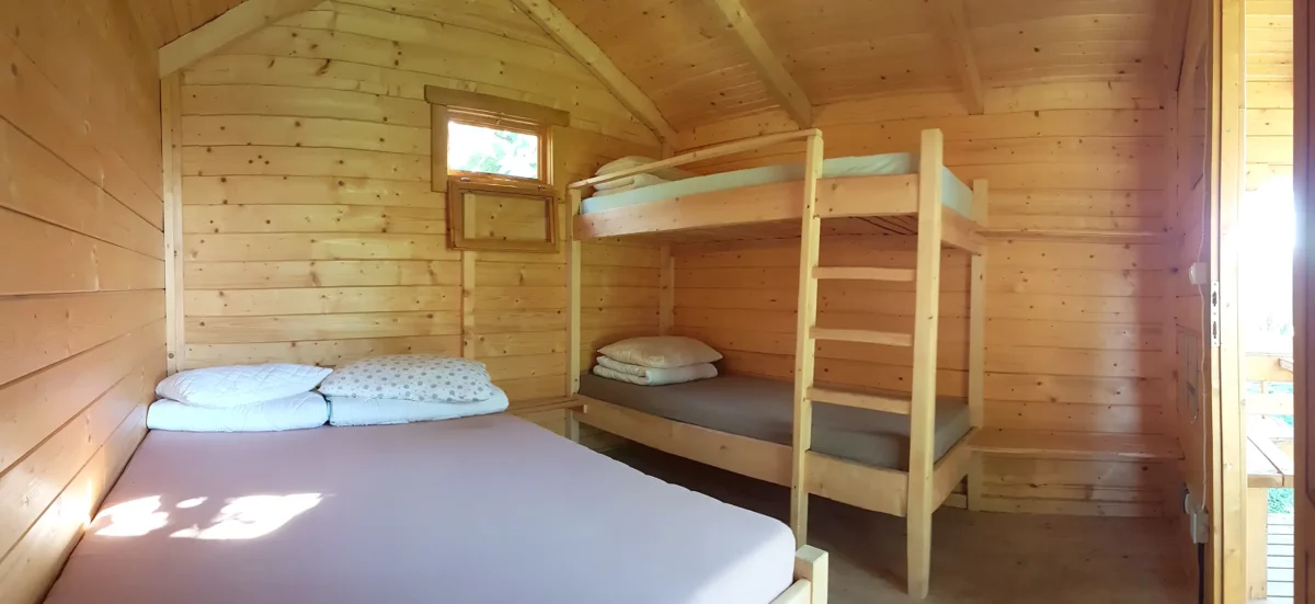 On an area of 1 hectare, we are waiting for you with 13 four-bed cabins, 40 places for caravans and about 20 places for tents.