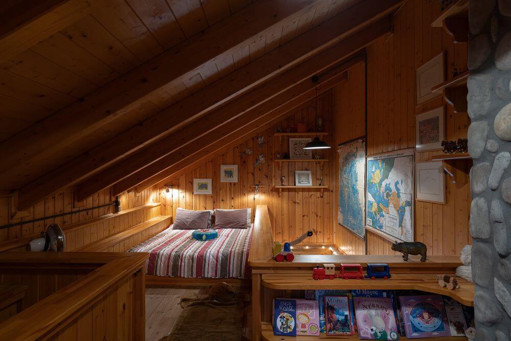 You will meet Cottage Becky, a unique accommodation with a capacity of 2 to 7 people. This is an accommodation that will enchant you… Starting from the separate fireplace, which extends around the living room, the windows from which you can enjoy unlimited views of the Alpine landscape, the vertical staircase that will lead you to the bunk bed and the kitchen from which you will be led to one of the most beautiful verandas on the farm and an attic which is like a fairy tale. A unique atmosphere of romance in nature.
