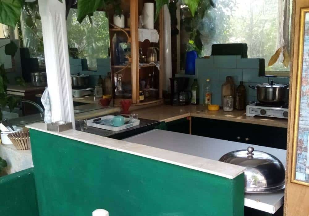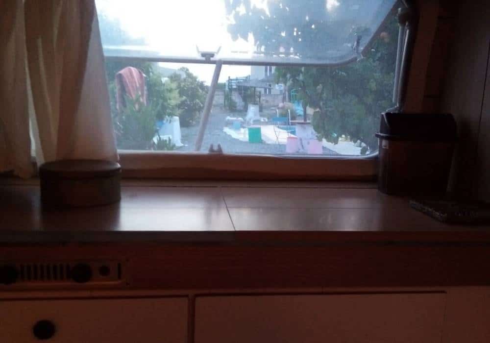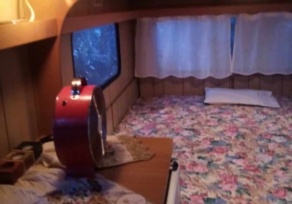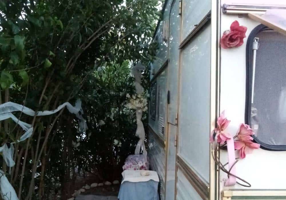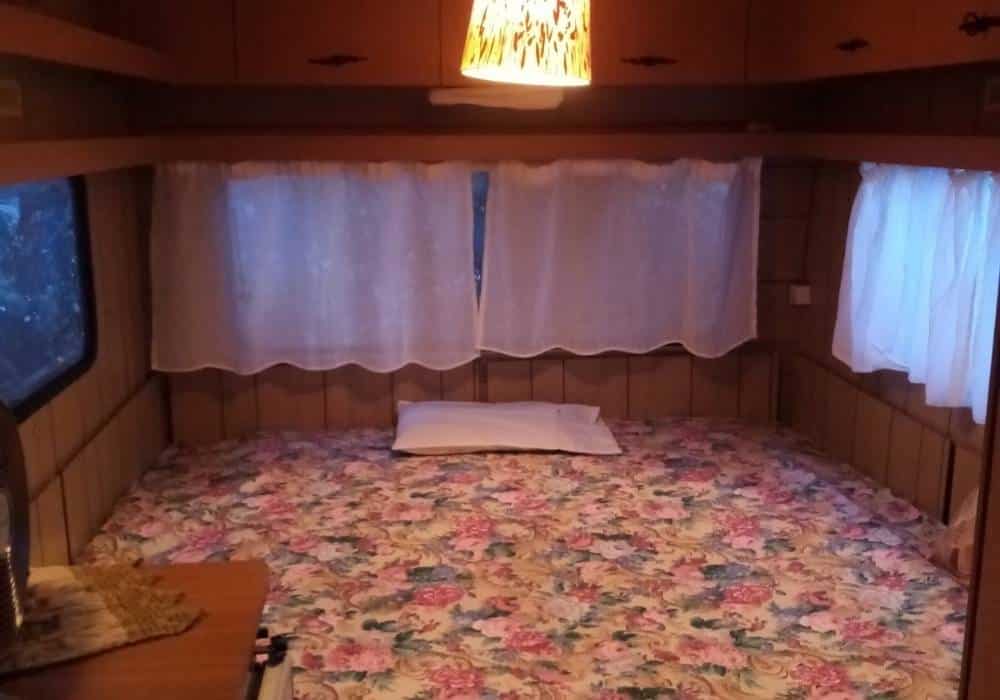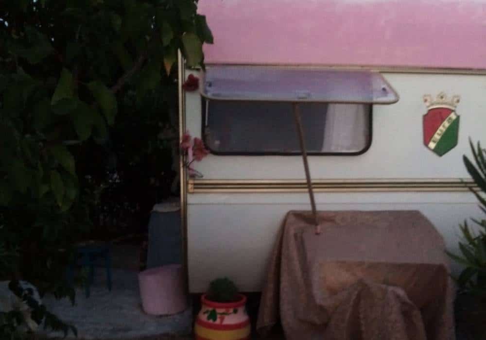 There you can rent a caravan for two, with a queen double bed, which is in a 630-square-meter plot of land on the edge of the village.