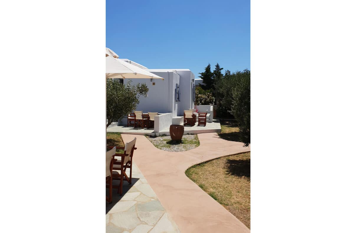 The components of the Sifnian tradition—stone, wood, and Sifnos’ famous ceramic art—have been harmoniously integrated, primarily for the décor of the unit’s outside spaces.