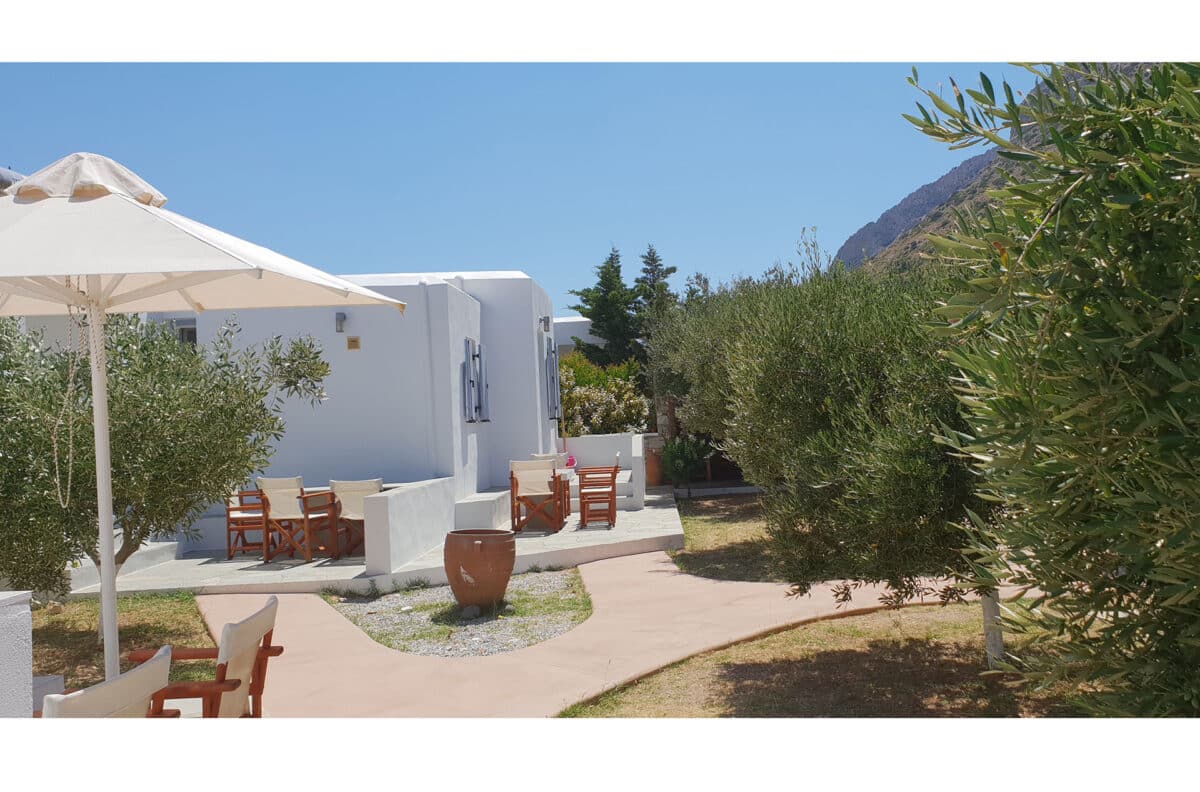 The Camping Makisis located at Kamares. A modest, well-kept campsite with trees, flowers, and roofs made of poles. It’s 600 meters behind the beach and 600 meters from the harbor. It will take you approximately 5 to 6 minutes to get there.