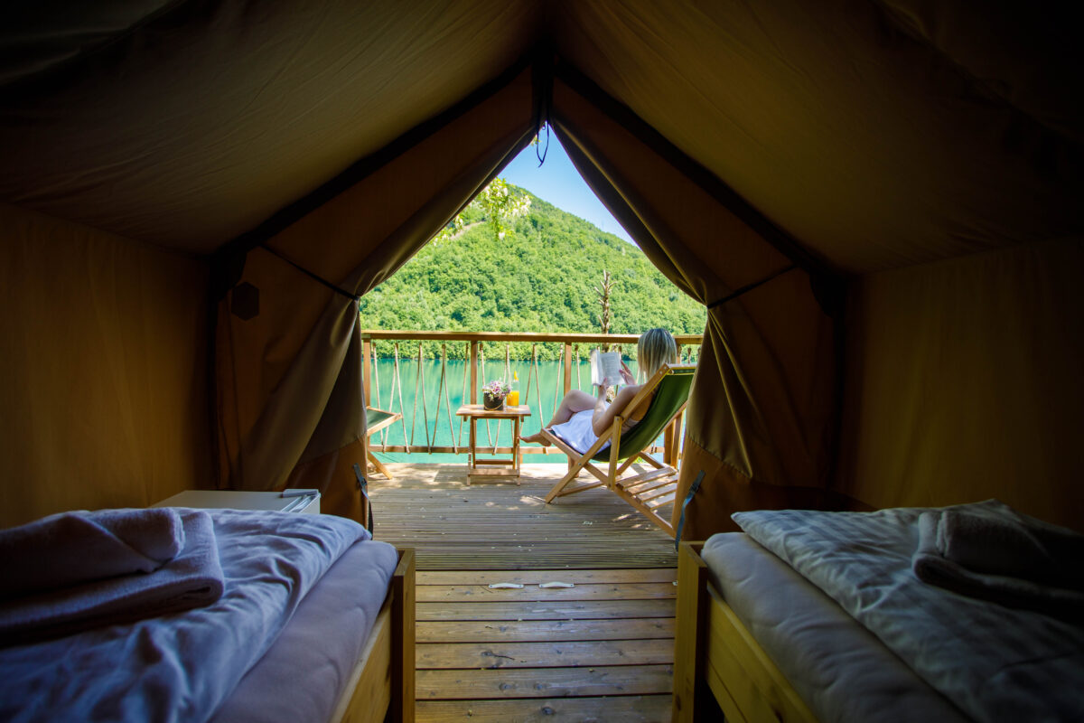 ⦁ Relax on the beach, take an afternoon nap in one of the hammocks and join the restaurant. And if you prefer to eat at your own tent, have Bosnian dishes delivered to your wooden terrace.