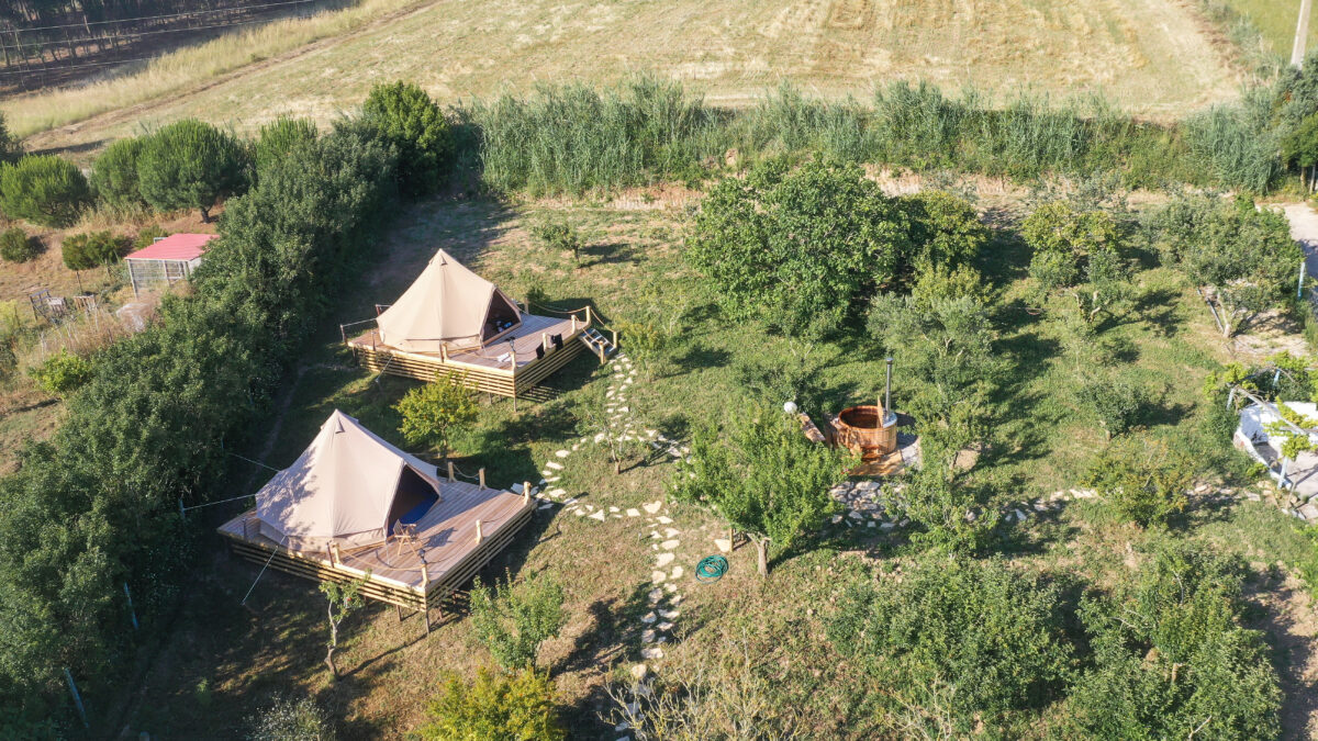 Experience Glamping at The Far End Surf House in Nadrupe, Lourinha! Just 5 km from the beach, our serene setting amidst an organic fruit garden offers tranquillity. Enjoy your private terrace and spend a night under the stars. We offer yoga, surfing, and personalized lessons at Praia de Areia Branca, a 10-minute drive away. We’re also close to popular surf spots like Baleal, Supertubos, and Peniche, reachable within 20 minutes. Start your day with a buffet breakfast and end it with a home-cooked dinner. We provide laundry and airport transfer services upon request. Only 50 minutes from Lisbon Airport. Accommodation: