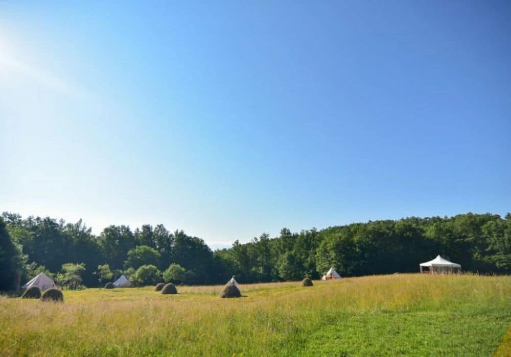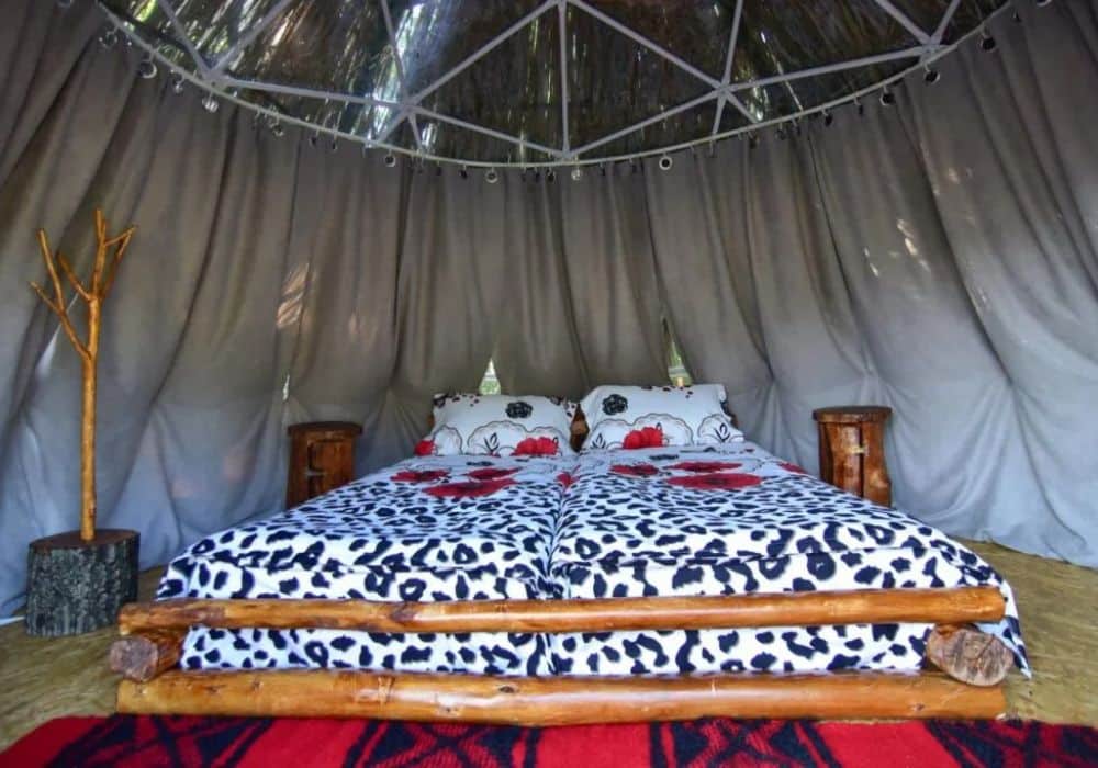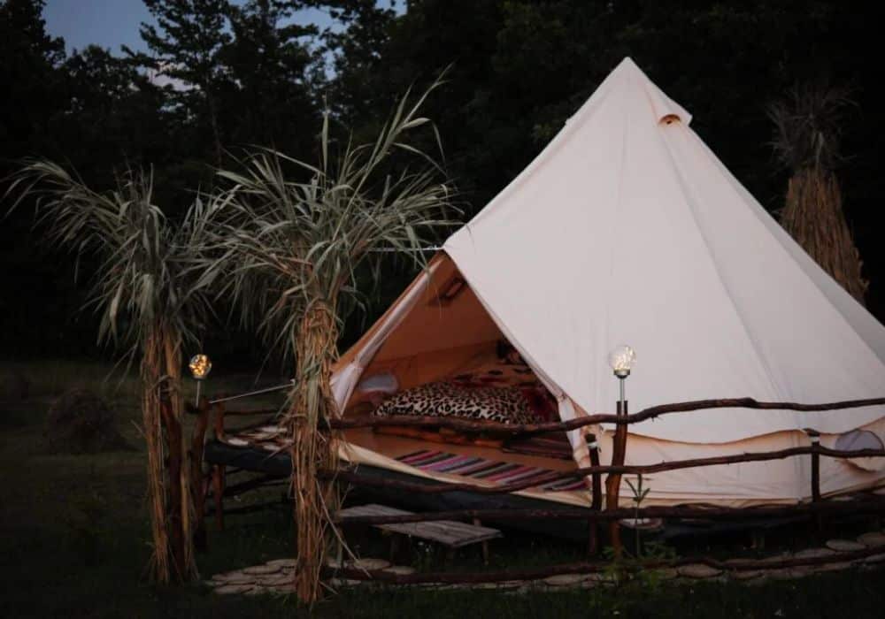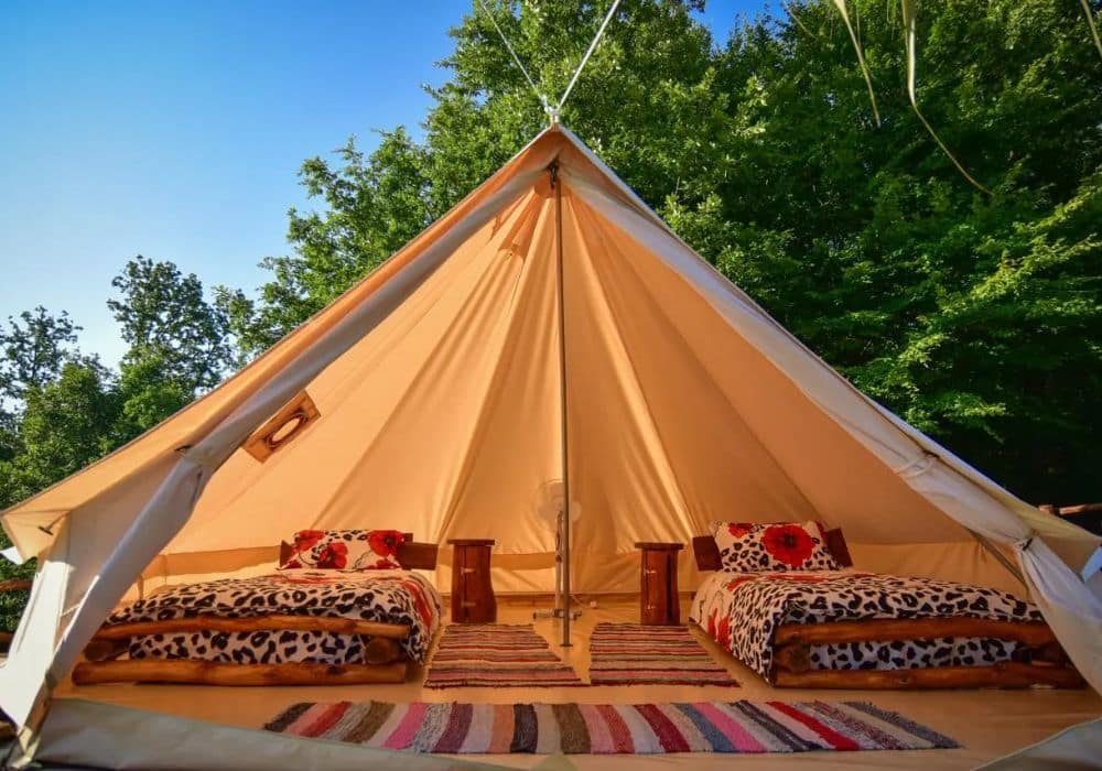 The bell tents are furnished with beds, soft mattresses, and linens that are intended to provide you with the ideal level of relaxation in the center of nature. There are also the lights, the fan you can use to cool off on hot days, and the electricity required to recharge the battery in your phone. A tent’s surface area is 20 square meters, which is adequate room for 2 beds, plus additional space as needed.