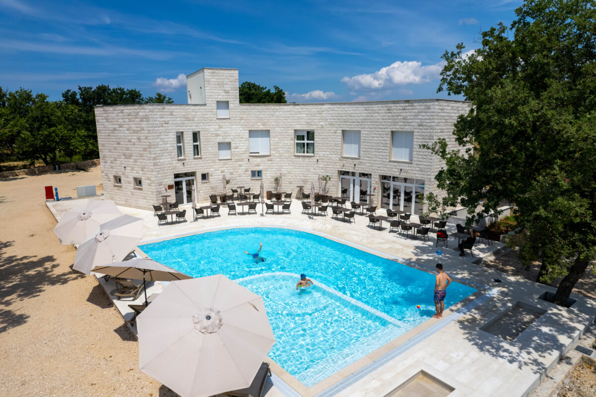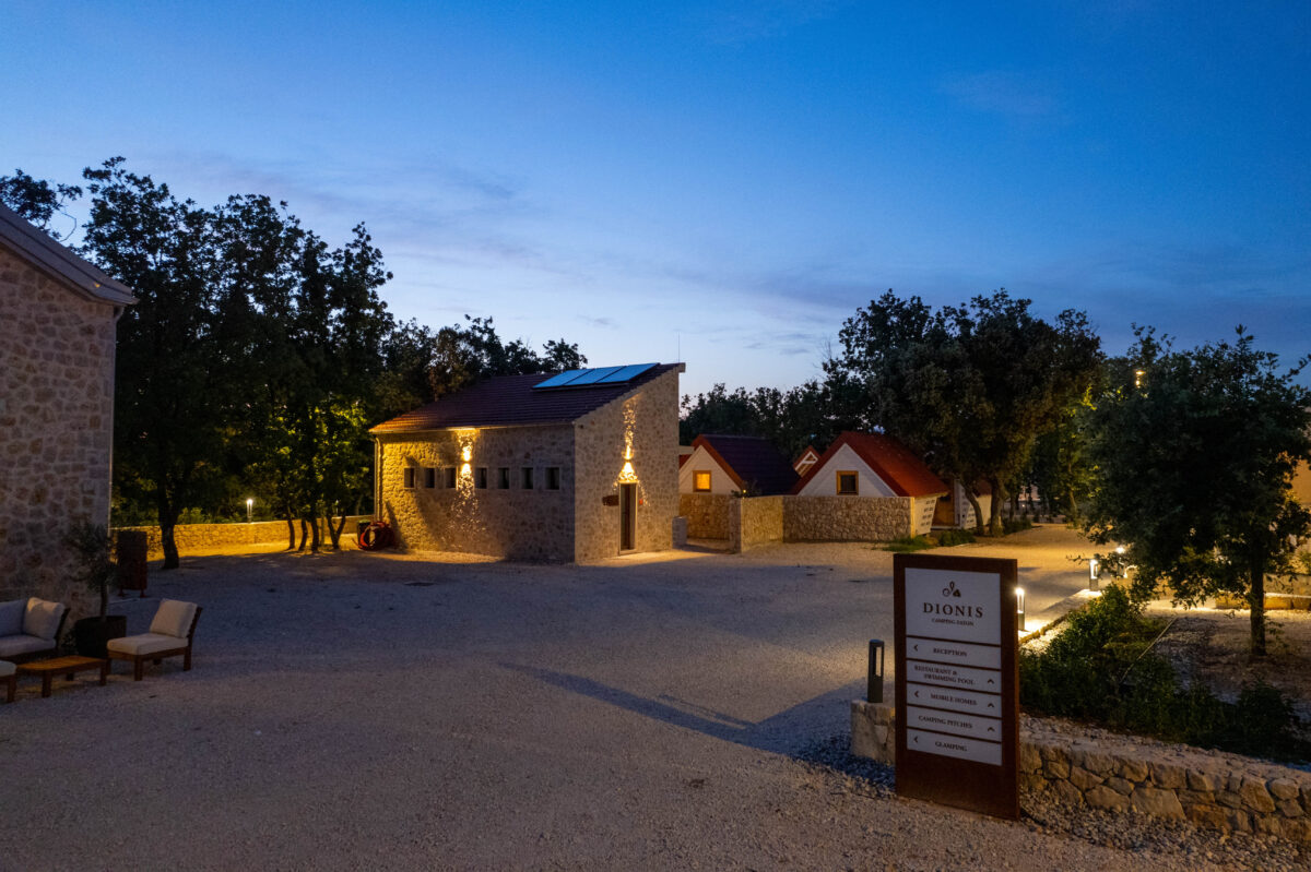 At Dionis Camping Zaton, camping pitches are in the central position, under the well-attended oak trees and close to the outdoor swimming pool.