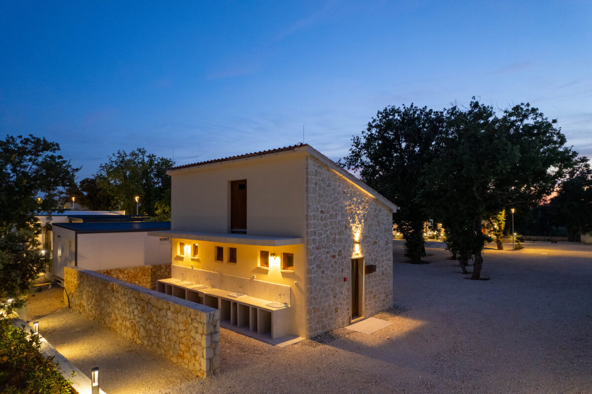 Each pitch has an area of 70 to 90 m2, electricity and water connections. Well-maintained trees provide partial shade, while modern and fully equipped sanitary facilities are close by.