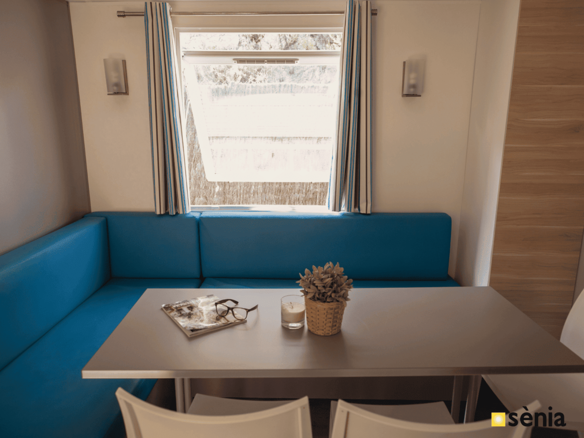 The Helia Plus is a comfortable mobile home with 3 bedrooms, ideal if you have a large family or if you come with several friends. In addition, most Helia Plus accommodations have impressive views on the Mediterranean Sea.