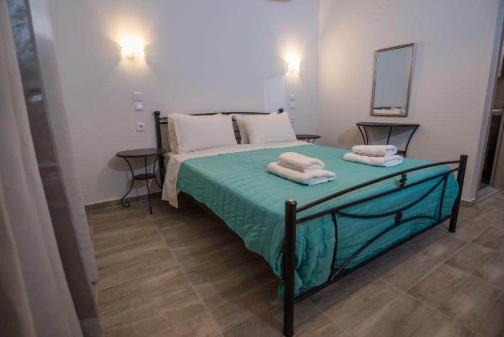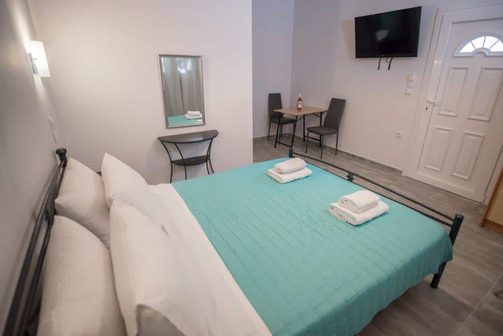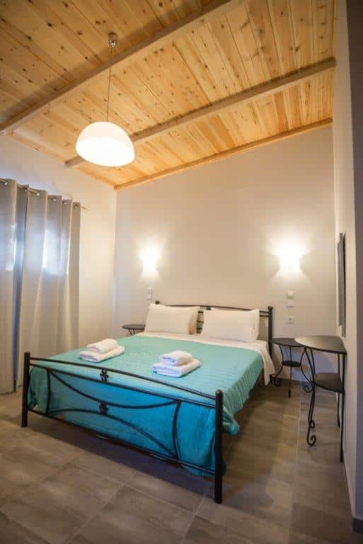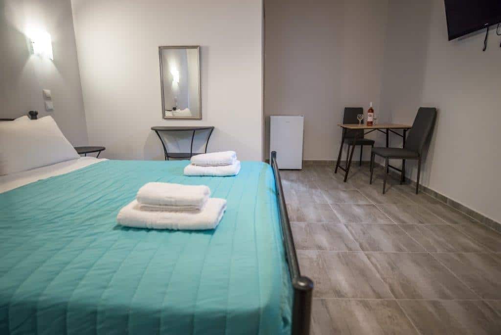 The rooms sleep two people (double bed) and have a private bathroom with hot water available throughout the day. They come with a refrigerator, a table, and chairs. They have a TV, air conditioning, and free WiFi, as well as sheets and towels. They’re all on the ground floor and have their own private terrace.