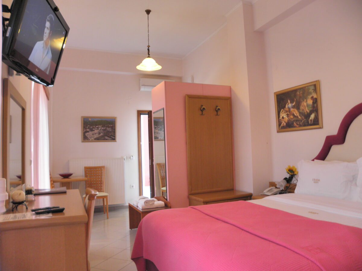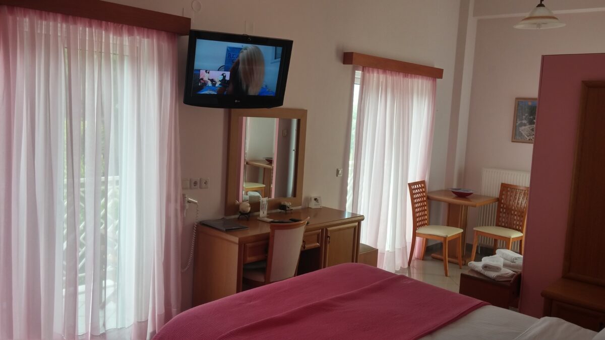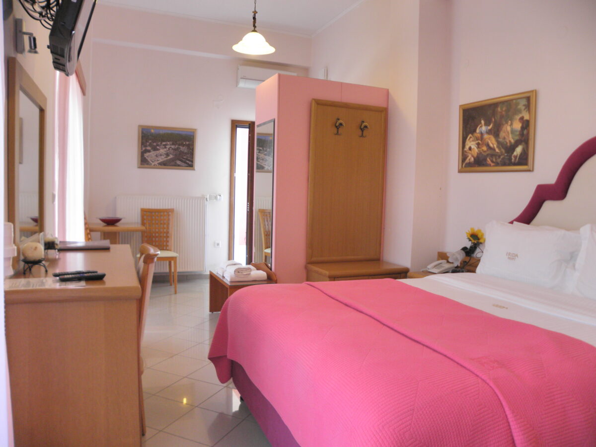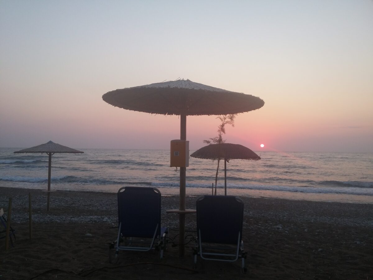 We Kostas and Rena, run this property for 12 years, I make my own Cabernet wine, which you will have the opportunity to taste. My vineyard is two miles away. We are in the middle of many sightseeings, archaeologiacal sites, natural landmarks, monasterries, Castles, museums, unique beaches. We are outside the village kalo Nero, a seaside retreat with mini markets, bakery, fruit shop, tavernas with fresh fishes and coffe shops. Our breakfast is home made with pure, fresh local products. When you step here you will feel the serenity and tranquillity of the place, you feel the energy of the nature and good aura of us. We have a huge garden with a playing ground in it, in which your kids can play with safety. In front of our Resort the turtles Caretta – Longheads are nesting from May to September. The place is ideal, for swimming, walking, fishing, sun bathing, diving. All apartments have a unique colour and are named after Iris, the messenger of Gods and humans. The apartments are well appointed with Sea View