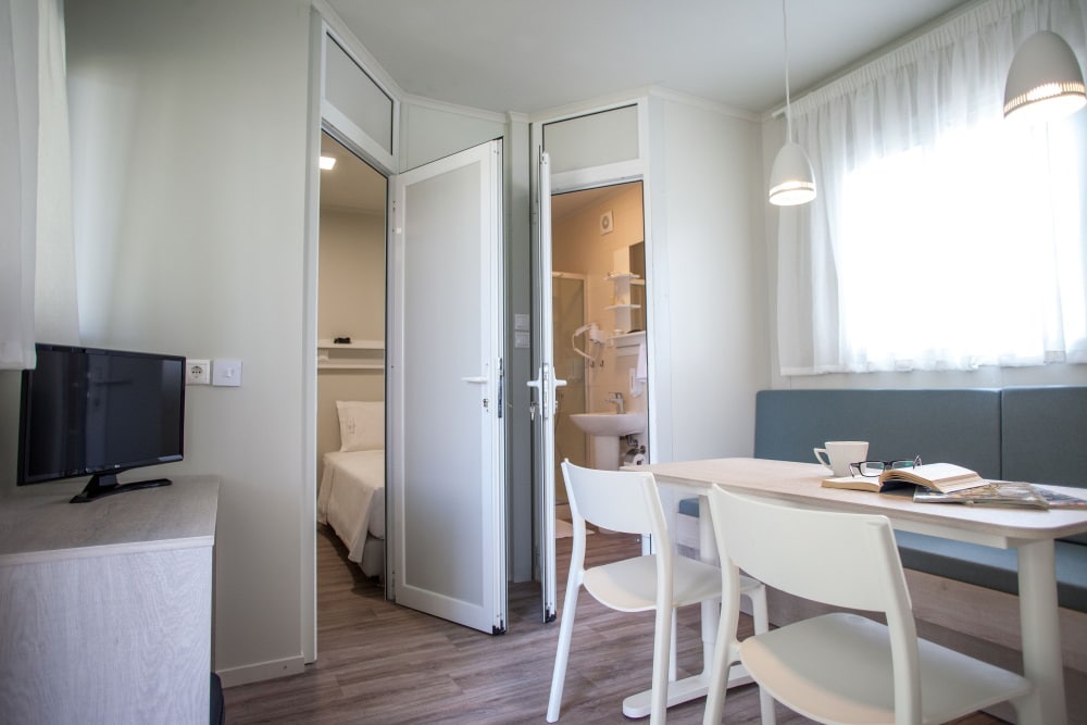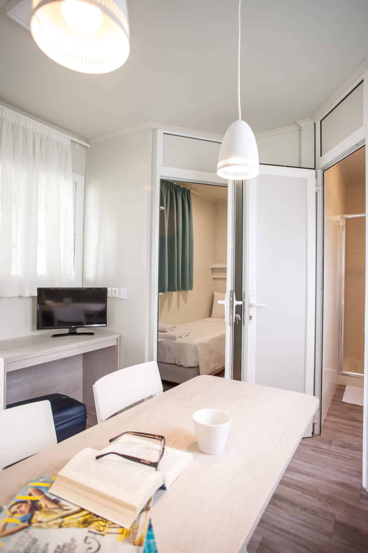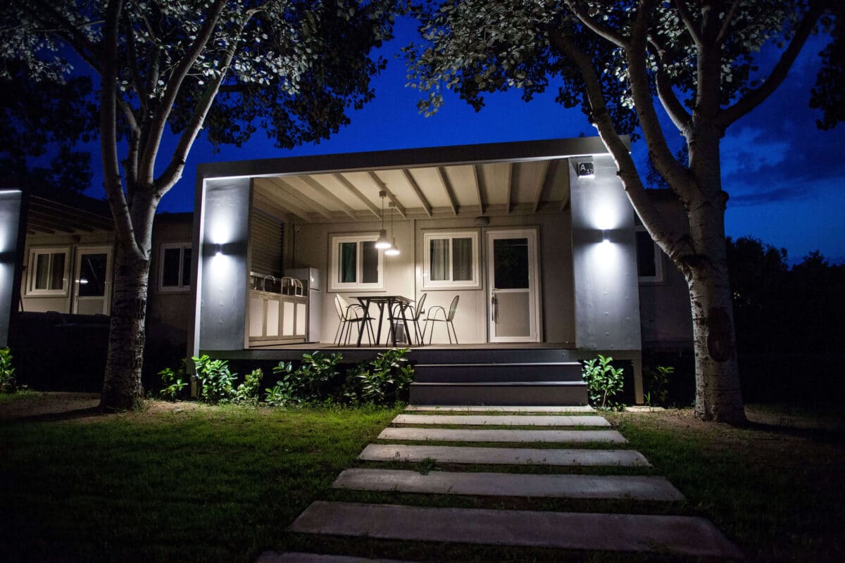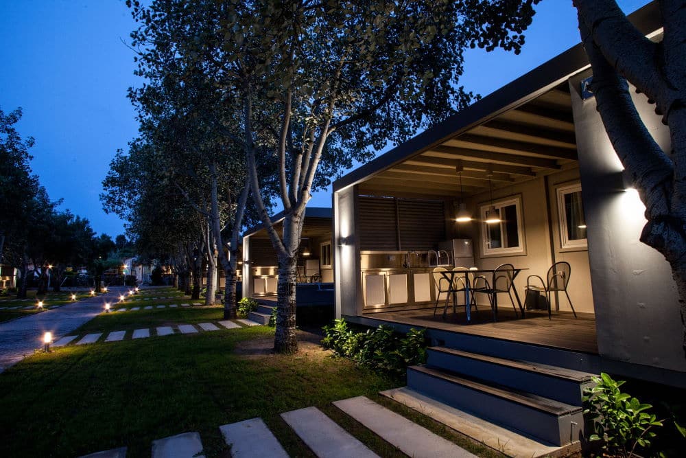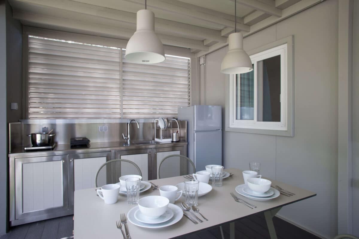 Mitari Camping & Villas is located in Sithonia Halkidiki and in particular in the Elia beach in Nikiti. The name Mitari is based on the geographic location, which is on the edge of two smaller gulfs, within the Toronean Gulf. Due to this fact it has access to two beautiful, sandy beaches with crystal waters. The organised campsite Mitari is one of the best Glamping in Halkidiki. Its services and amenities impress the guests and even more the families that choose it for their summer holidays. Some of them are: mini market, restaurant, Beach volley court, playground, basketball court, summer cinema, ping pong tables, football court, shared barbecue space, laundry, wash dishing space, shared freezer, fridges to rent, Wifi , toilets for disabled persons and hot water 24 hours a day (fyi there is an electrical limitation for hot water along with a charge of 30 cents per use, in order to prevent overconsumption with respect to environment which is very important for eco-conscious reasons). Mitari Glamping or Mitari Villas are located in a separate space from the rest of the organised campsite. They can accommodate up to 4 people, providing 2 bedrooms, one with 1 double bed (size: 1,50 Χ 2,00) and the other one with 2 single beds (size: 0,75 Χ 2,00, each). In Mitari Villas you can also find a fully equipped, outdoor kitchen with induction cooktop, refrigerator-freezer, toasting device, a wardrobe, safe box, blow dryer, towels, linen, Cable TV, Wifi and 1 free parking space. The bathroom is inside the Glamping Mitari and is private with a shower. In addition, you can enjoy air condition both as a cooler and a heater. As a guest in Glamping Mitari you can also use a set of deckchairs and umbrellas by the beach, shared barbecue space with the rest of Campsite guests and linen change and towels every 4 days. Also, you can choose between the 2 beaches that Mitari Camping & Villas have access. In the Sithonia area where Mitari Camping & Villas is located, the guests can enjoy the beauty of the surrounding countryside, traditional villages, incredible beaches and picturesque landscapes that combine the blue of the sea with the green of the countless pine trees. Near Mitari Camping & Villas you can visit the golden beaches of Metamorfosi and Nikiti as well as the alleys and squares of Agios Nikolaos and traditional settlement Parthenonas. For those who prefer to combine their vacation with sports during their summer holidays, there are plenty of activities offered near the Mitari Camping & Villas. Some of them are biking with different levels of difficulty, numerous sea sports like surfing, windsurfing, kayaking, canoe and also hiking or walking into the beautiful trials of Halkidiki. The guest can reach Sithonia’s peninsula, where Mitari Camping & Villas is located, by car or bus. There are plenty of busses arriving frequently from Thessaloniki to different cities of Halkidiki, especially during the summer season. Pets are not allowed in Mitari Villas Check-in: 15:00 / Check-out: 11:00