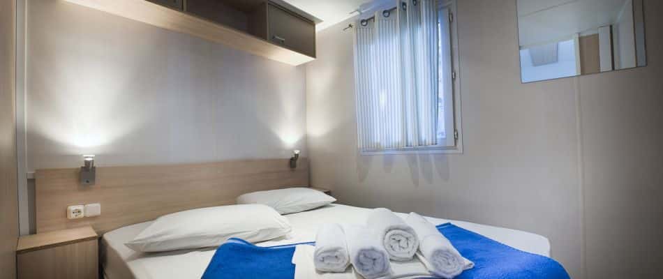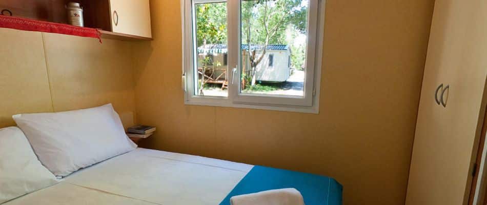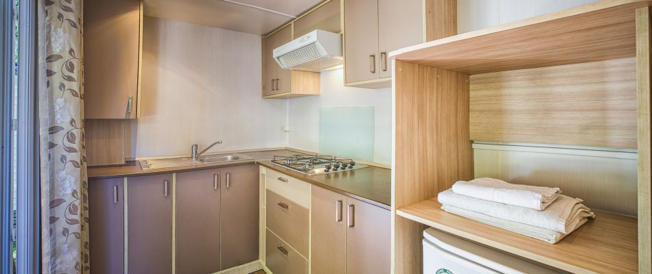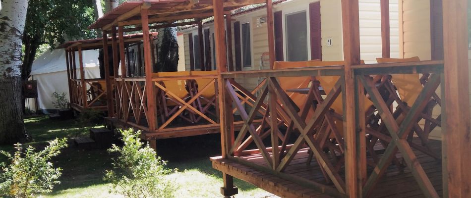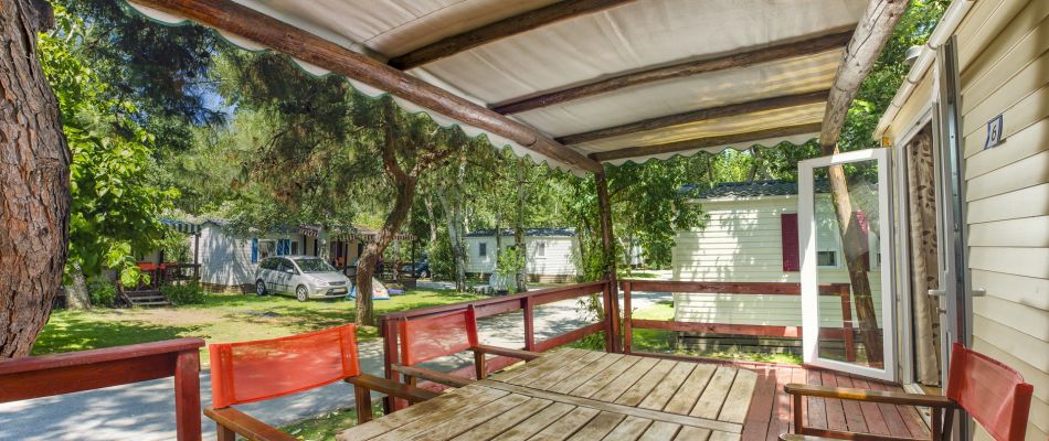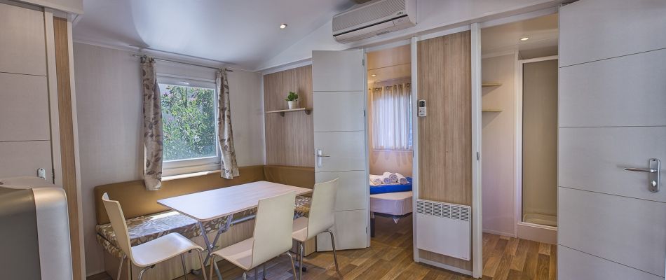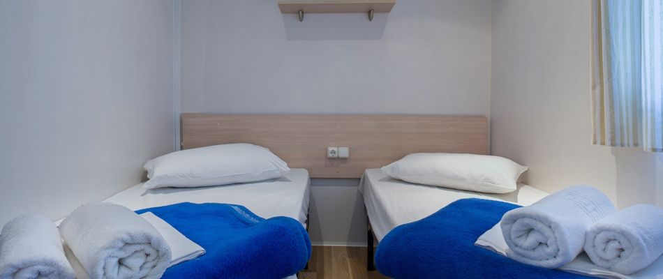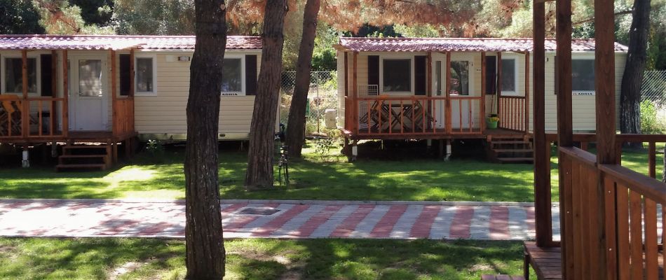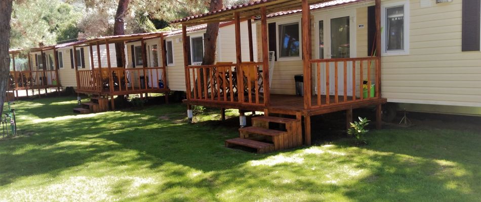 Mobile homes for four people are located about 1-2 minutes from the beach.