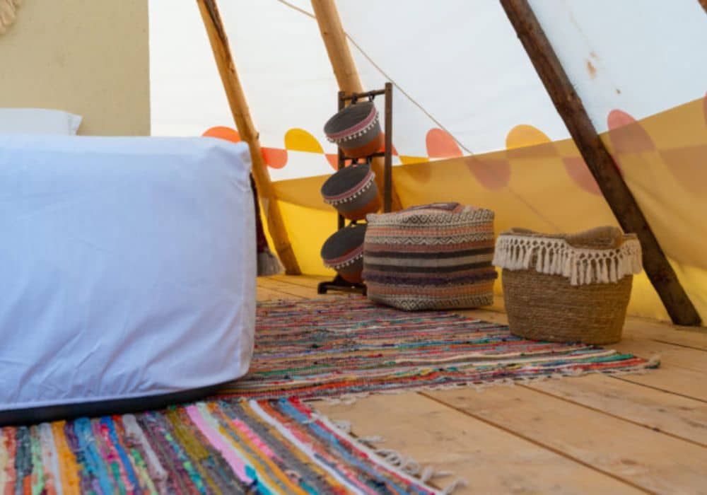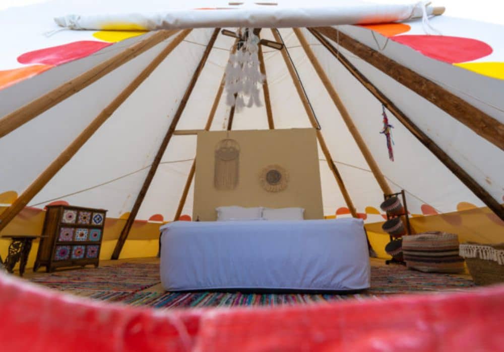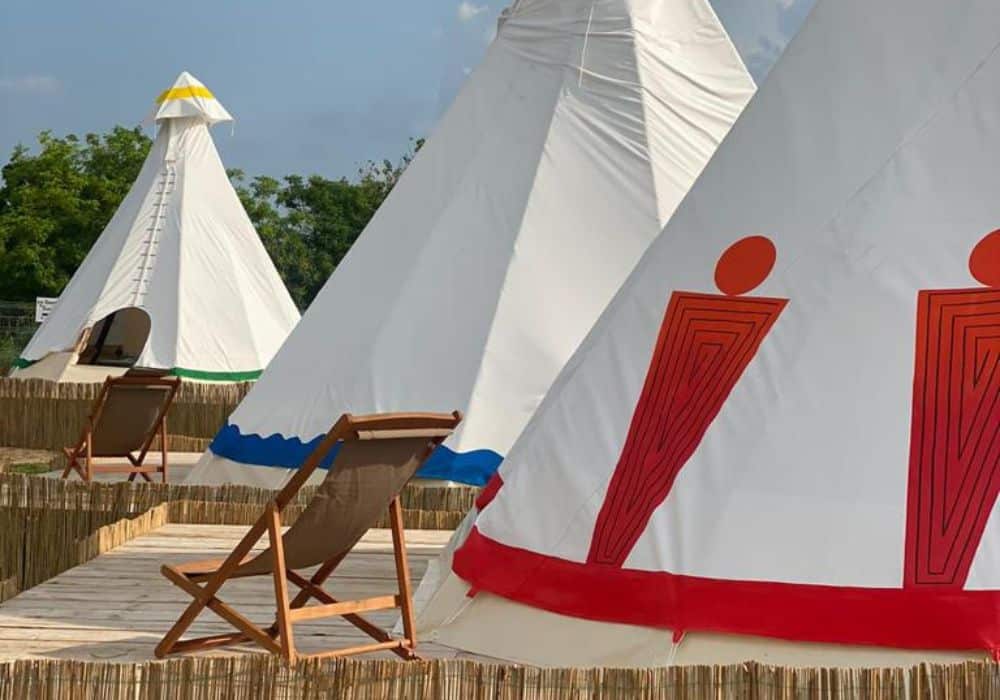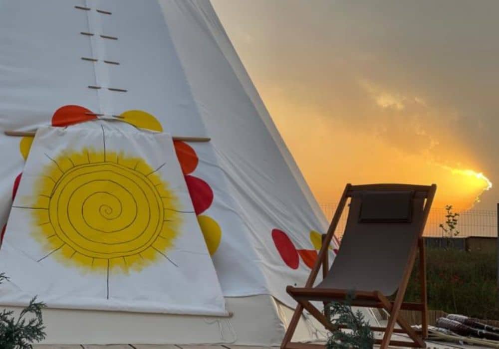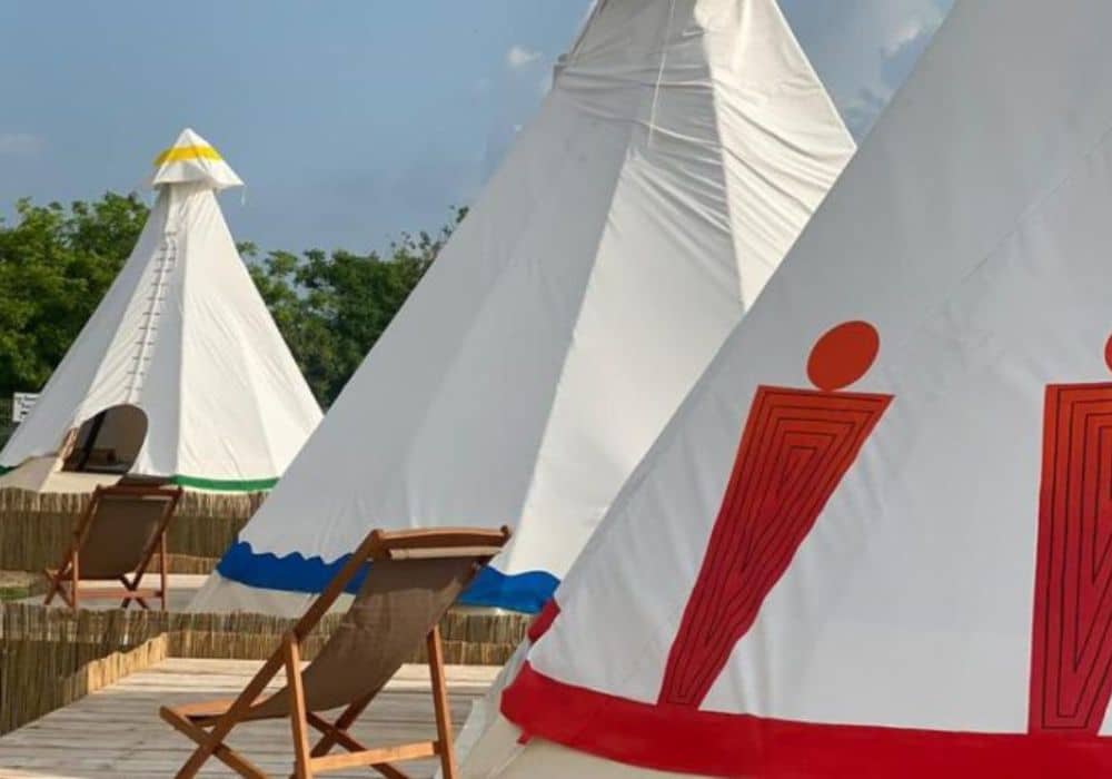The Glamping area has a lot of space, which is great for people who love nature and want to experience both the beauty of the wilderness and the comfort of teepee tents.