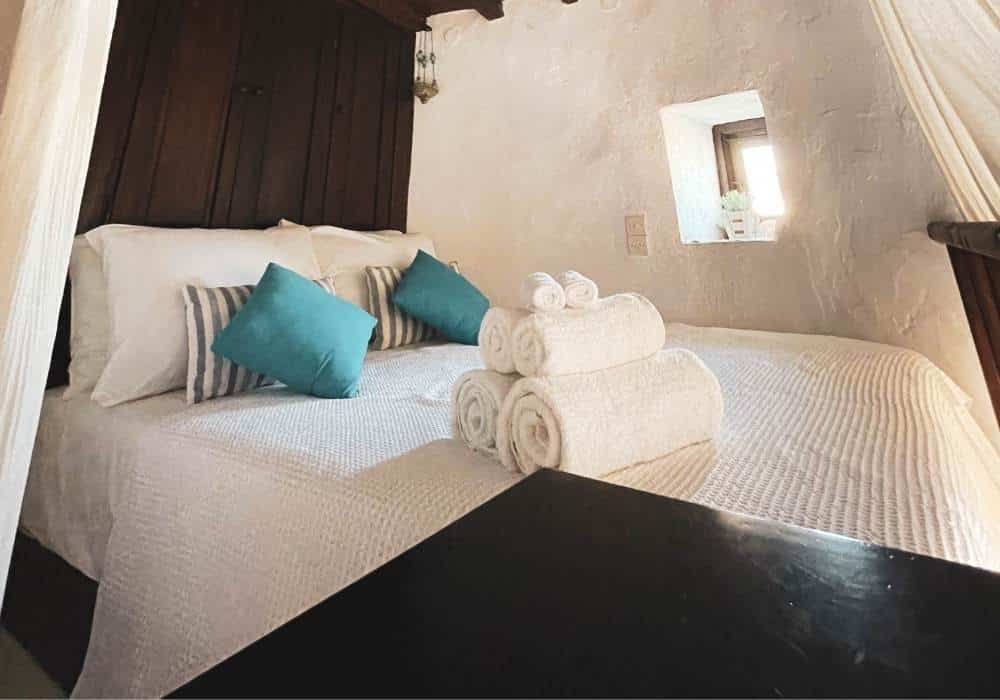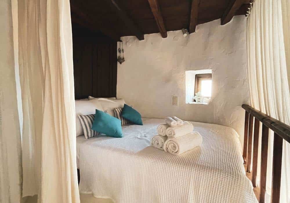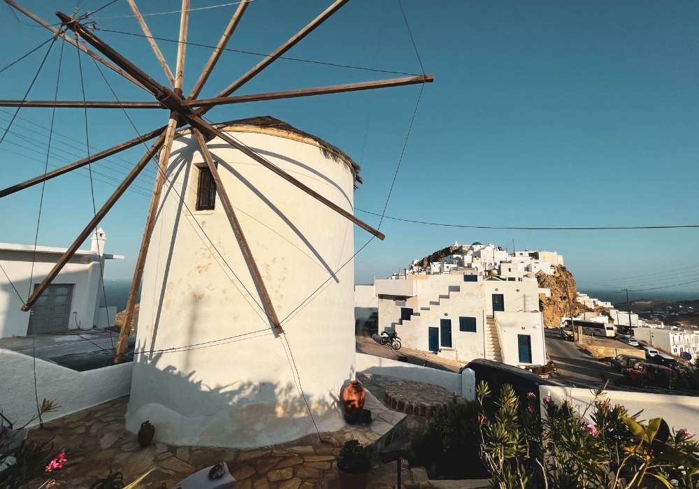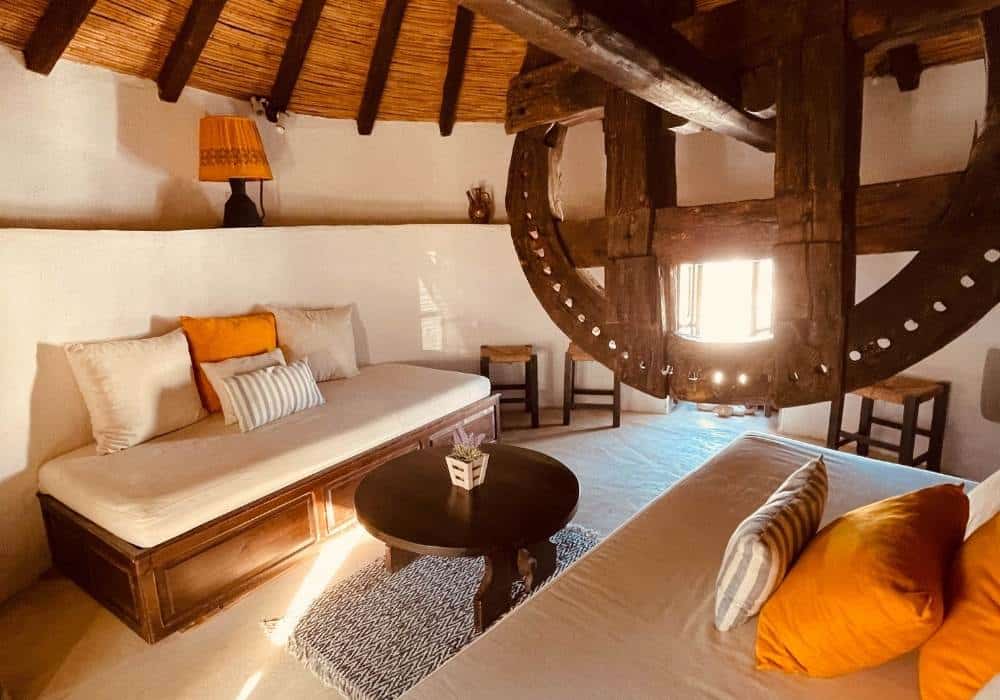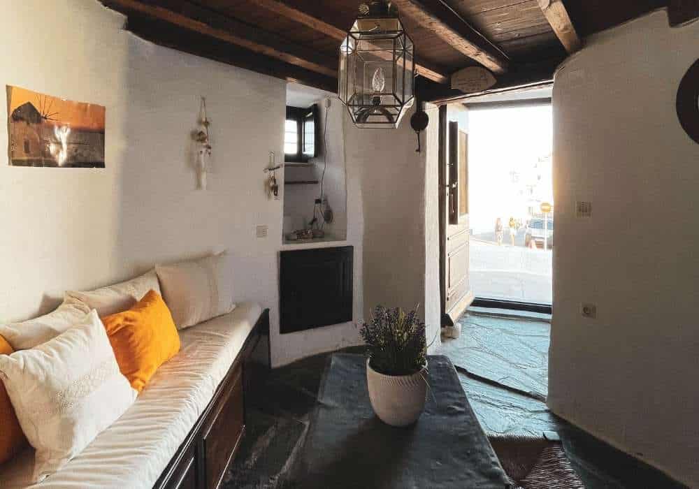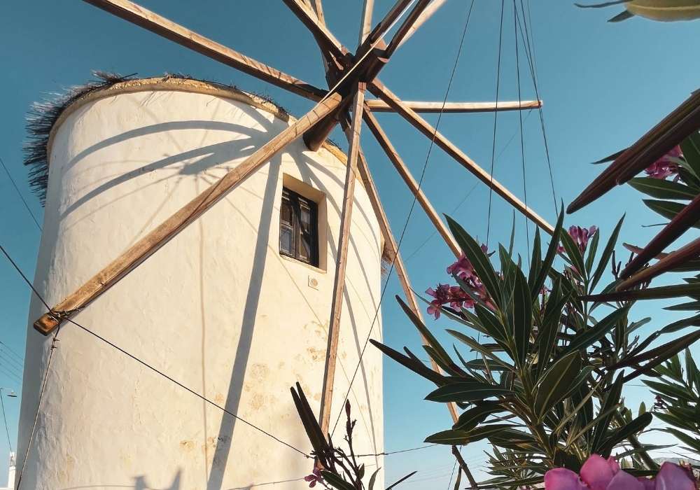 In the heart of Serifos Town in the most prominent position, Windmill Serifos is the first of a series of windmills. It’s beautiful, sturdy and imposing round building, with a traditional conical thatched roof. The windmill was renovated in the 90’s and has been converted into a three-level holiday home, retaining many of its traditional elements, offering a unique living experience. It’s special shape and wide walls provide a unique feeling of tranquillity and security. Divided into 3 levels, the ground floor houses a fully equipped kitchenette suitable for light meals and breakfasts, the next level has the bedroom and the bathroom while on the upper level there is a spacious living are. On the outside The Windmill Serifos provides a private patio with sun loungers and a seating area. *For safety reasons, due to the very stir stairs, children under the age of 15 are not allowed.