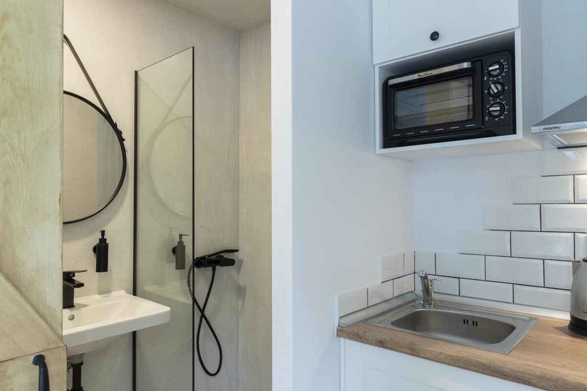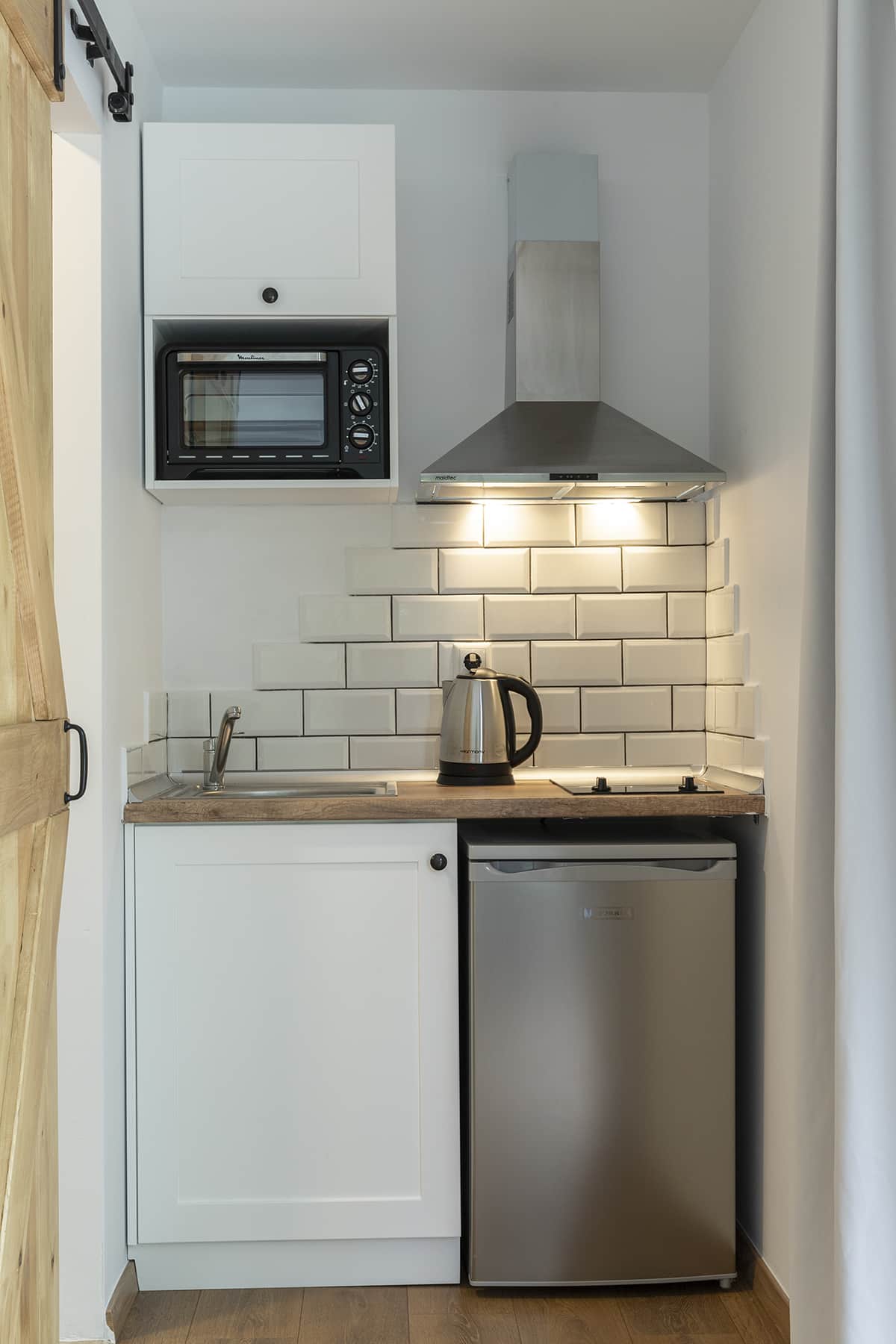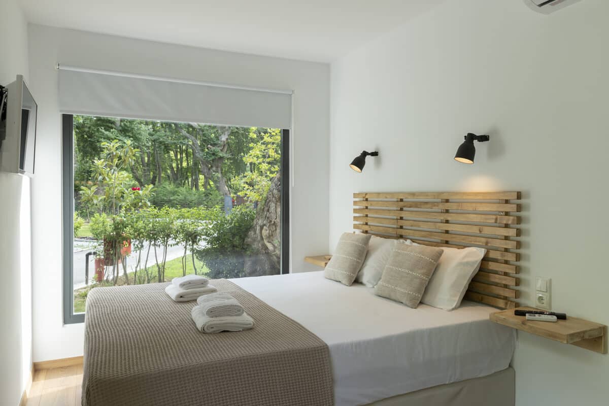 Gkaras Campsite & Apartments is on Skotina Beach, in a campsite. It’s 100 meters from the beach and 500 meters from restaurants and stores at Mount Olympus’s south-eastern end. The vibrant village of Platamonas, with its Byzantine castle and beach bars, is 6 miles from Gkaras Campsite & Apartments. Dion is a 10-kilometer drive away. Within 110 kilometers is the Thessaloniki International Airport. Gkaras Campsite & Apartment “Small Bungalow” offers a variety of amenities, including: