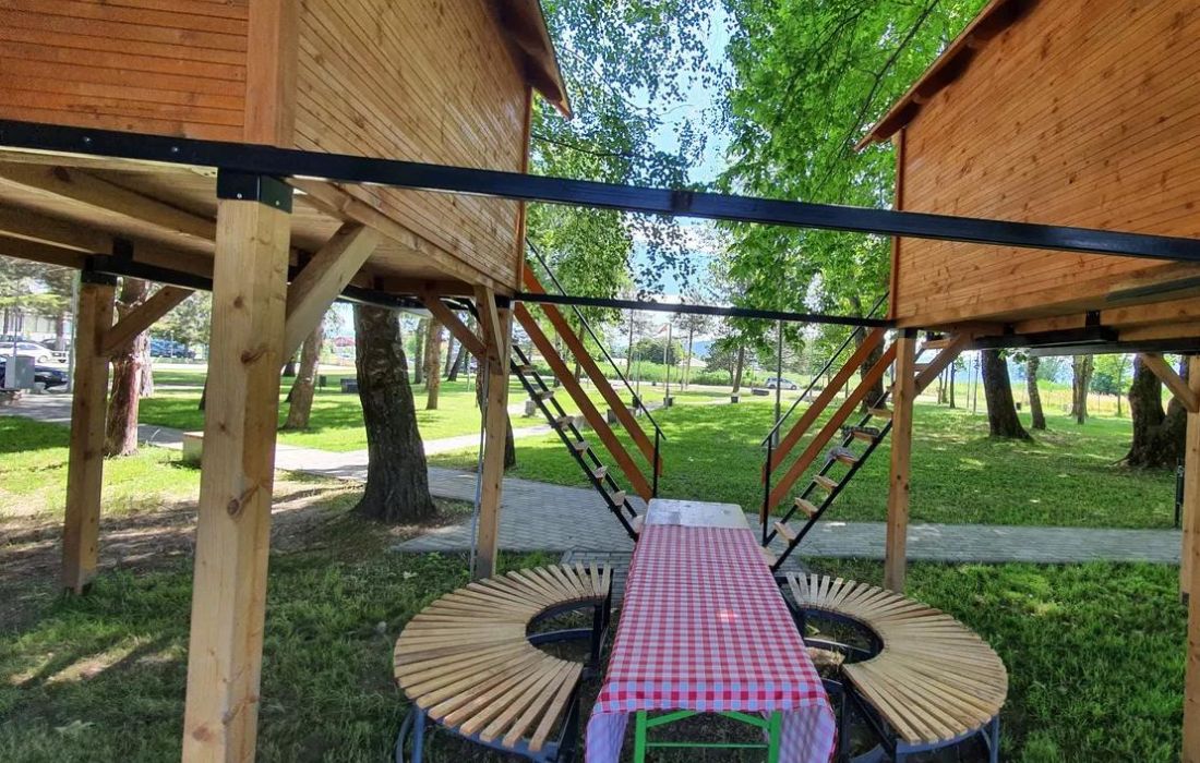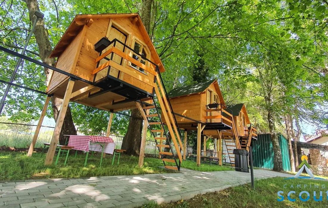 Treehouse Scout Struga is equipped with a double bed or two single beds, coffee table and a small cabinet. The Treehouse is the first choice of young adventurers and romantic couples. Electricity, parking, warm water 24 hours a day, drinking water, shared toilets and showers are available for each treehouse. You will enjoy a totally different and unique vacation in our romantic treehouses.