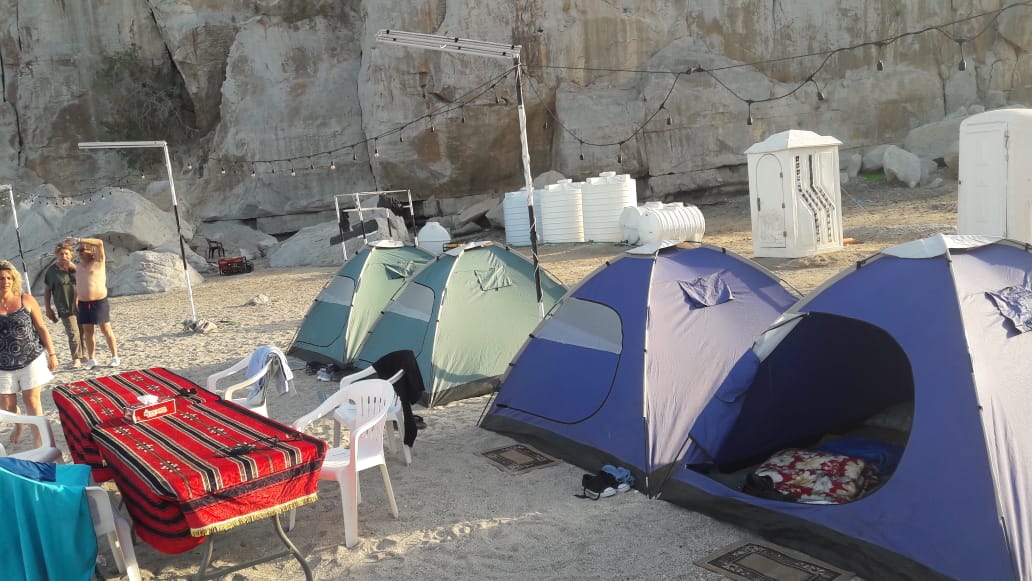 Travel by speedboat from Khasab Harbor to a secluded beach campsite. Enjoy an overnight stay in fully equipped camping tents (double occupancy). We provide sleeping bags, blankets, mattresses, pillows, bed sheets, a generator & lights, plastic chairs & tables, a traditionally decorated Majlis, camp showers, and portable toilets. Savor a barbeque dinner and breakfast on the beach.