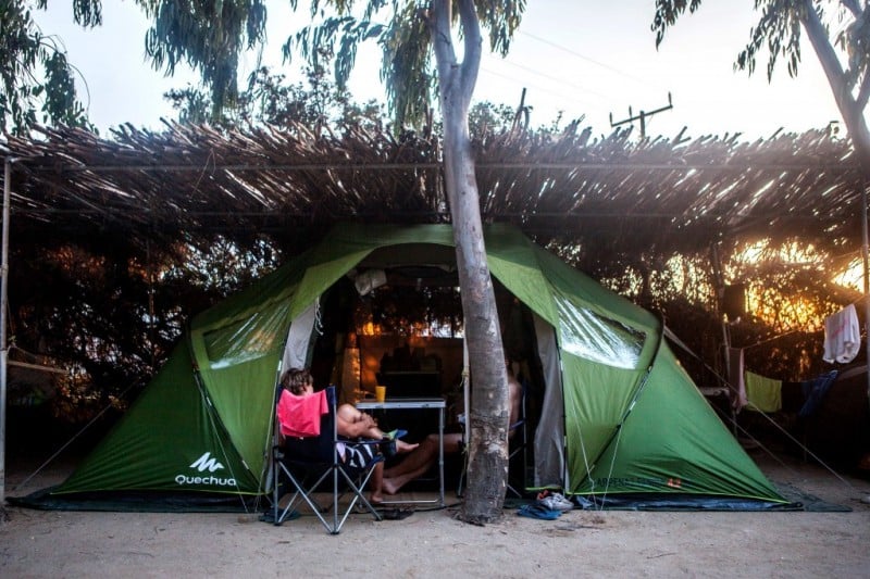 Unser Campingplatz in Agia Anna/Plaka, Naxos, ist üppig und parkähnlich, mit Bambusdächern und Bäumen, die jeden Platz beschatten. Es gibt keine Einschränkungen, wo Sie Ihr Zelt aufstellen dürfen; Sie können es überall aufstellen, wo Sie wollen. Es gibt zwei Dusch- und Toilettenkomplexe, die alle 2015 komplett renoviert wurden und über europäische Toiletten, Innen- und Außenduschen sowie 24 Stunden warmes Wasser verfügen. Papierhandtücher, Seife und Toilettenpapier sind in den Gebäuden vorhanden. Es gibt zwei Küchen auf dem Gelände, jede mit einem Kühlschrank, einem Gefrierschrank und mehreren Elektroplatten. Viele der Stellplätze verfügen über einen Stromanschluss (die Preise finden Sie auf unserer Preisliste). Sie können Ihr Haustier gerne mitbringen, müssen aber darauf achten, dass es andere nicht belästigt. Nach Mitternacht sollte es ruhig sein, so dass Sie Ihre Partys oder Debatten am Strand abhalten können. Schlafsäcke, Matten und Mietzelte können gemietet werden (siehe Preisliste). Auf dem Campingplatz gibt es alte Stühle und Tische, die Sie vor Ihr Zelt stellen können (wenn viel los ist, müssen Sie natürlich warten, bis jemand abreist und der Platz wieder frei wird). In der Cafeteria/Bar des Camps gibt es kostenloses WiFi.