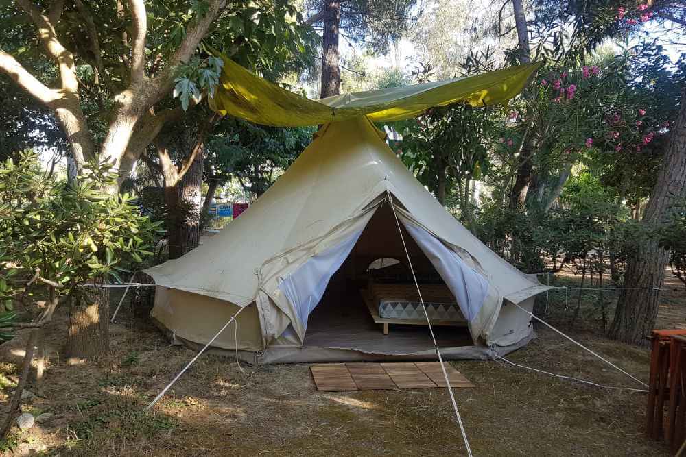 Die 70 geräumigen (40 bis 100 qm), durch Sträucher, Bäume und Blumenplätze getrennt, bieten Strom, Wasser und einen hervorragenden natürlichen Schatten.