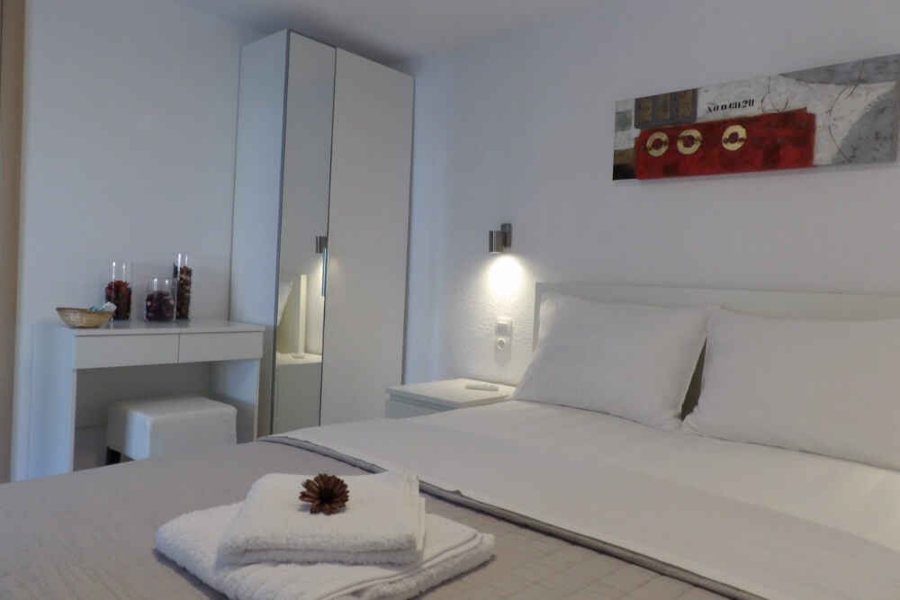 Zimmer für 2 Personen, renoviert und mit einer prominenten Lage vor dem Meer, sind ideal für Paare. Sie verfügen über ein Doppelbett mit Bettwäsche, ein eigenes Bad mit allem Notwendigen, wie Handtücher und tägliche Reinigung. Zur Ausstattung des Zimmers gehören Klimaanlage, kostenloser Parkplatz für 1 Fahrzeug (Auto oder Motorrad), kostenloses Wi-Fi und TV. Die Küche befindet sich nicht im Zimmer, sondern in den Gemeinschaftsräumen, die auch von anderen Campinggästen genutzt werden. Im privaten Garten oder auf dem Balkon mit Gartenmöbeln können Sie den Meerblick genießen, während Sie Ihre Mahlzeiten oder Ihren Kaffee genießen.