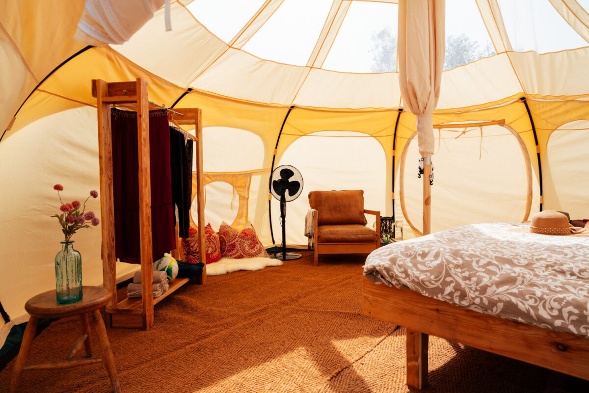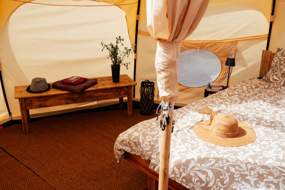 Verbringen Sie die Nacht im Lotus Bell Zelt im grünen Herzen der Toskana. Dieses Zelt ist dank seiner Form besonders geräumig und sein transparentes Dach erlaubt Ihnen, den toskanischen Sternenhimmel bei Nacht zu betrachten.