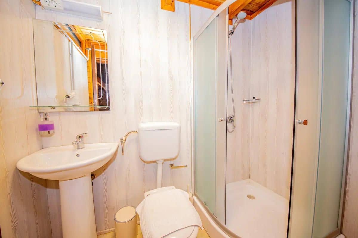 Dieser Ort ist ideal für einen Ausflug mit Ihren engen Freunden und Familienmitgliedern. Sie werden viel Platz haben, um Zeit miteinander zu verbringen, dank des großen Gartens, der Feuerstelle und des gemeinsamen Pools, die zur Verfügung stehen. Die Küche ist mit allem ausgestattet, was Sie brauchen, um eine Mahlzeit für sich und Ihre Gäste zuzubereiten. Die Schlafzimmer sind geräumig und komfortabel, und in den Schränken finden Sie ausreichend Platz, um all Ihre Sachen zu verstauen. Dank des zuverlässigen und schnellen WLANs werden Sie nie die Verbindung zur Außenwelt verlieren. Während der heißen Sommertage sorgt die Klimaanlage für eine angenehme Temperatur. Die Terrasse oder der Balkon ist ein hervorragender Ort, um sich zurückzulehnen, zu entspannen und die atemberaubende Landschaft zu genießen.