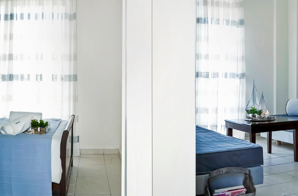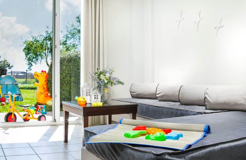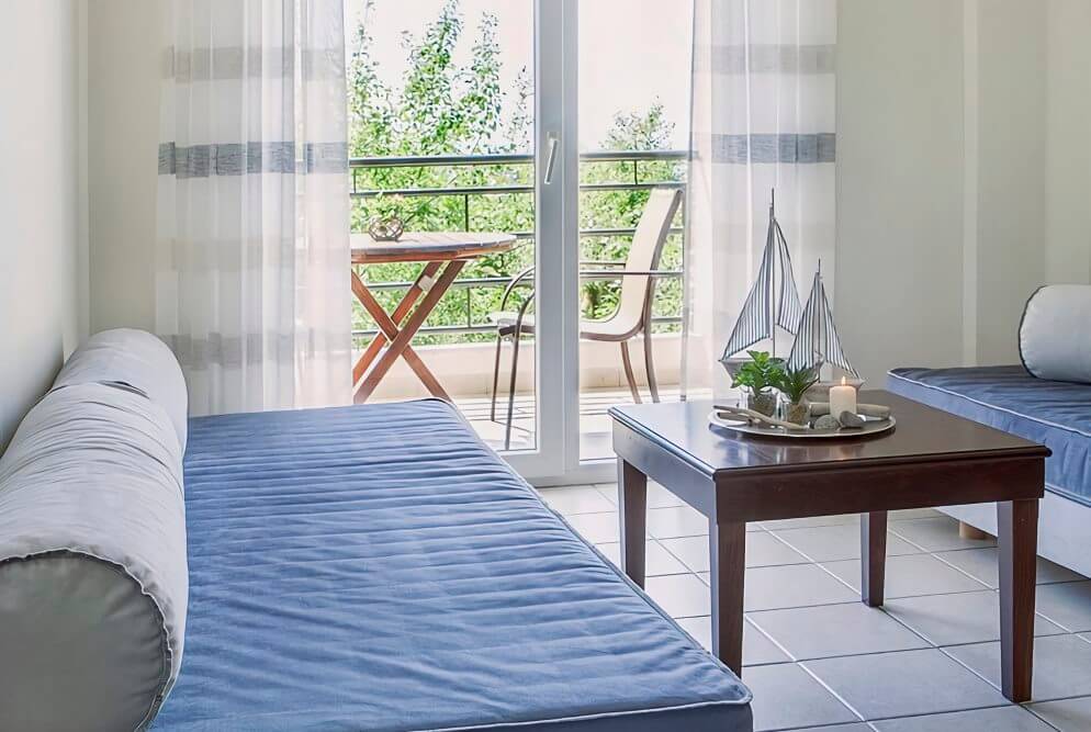 Τα διαμερίσματα καλύπτουν επιφάνεια 35 τ.μ. Διαθέτουν ένα υπνοδωμάτιο (με διπλό κρεβάτι), καθιστικό με μικρή κουζίνα, τραπεζαρία, καρέκλες και 2 άνετα μονά κρεβάτια. Διαθέτουν το δικό τους μπάνιο και ιδιωτικό επιπλωμένο μπαλκόνι, όπου οι επισκέπτες μπορούν να χαλαρώσουν στους καταπράσινους κήπους. Αυτή η επιλογή είναι ιδανική για οικογένειες, παρέες (έως 4 άτομα) ή ζευγάρια που αναζητούν λίγο περισσότερο ζωτικό χώρο.