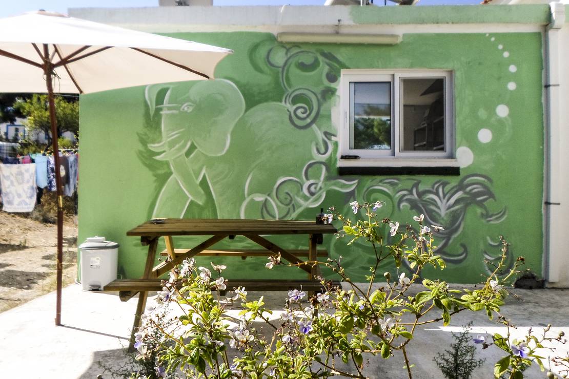 Μόλις 500 μέτρα μακριά από το παραδοσιακό χωριό του Θεολόγου, οι επισκέπτες μπορούν να δοκιμάσουν αυθεντικά ελληνικά φαγητά και κρασί. Η παραλία του Θεολόγου απέχει μόλις 2 χιλιόμετρα και είναι ένας παράδεισος για kitesurfing, windsurfing και κολύμπι! Παρόλο που οι άνθρωποι χρειάζονται τόσο λίγα για να είναι ευτυχισμένοι, παρέχουμε με χαρά στους επισκέπτες μας wifi και ανέσεις του σπιτιού (κουζίνα, μάγειρας και μπάνιο με ζεστό νερό) για να τους κάνουμε να νιώσουν σαν στο σπίτι τους. Παρακαλούμε να σέβεστε το περιβάλλον. Το κάπνισμα επιτρέπεται μόνο έξω από το κεντρικό κτίριο και την τραπεζαρία. Η τραπεζαρία διαθέτει wifi.