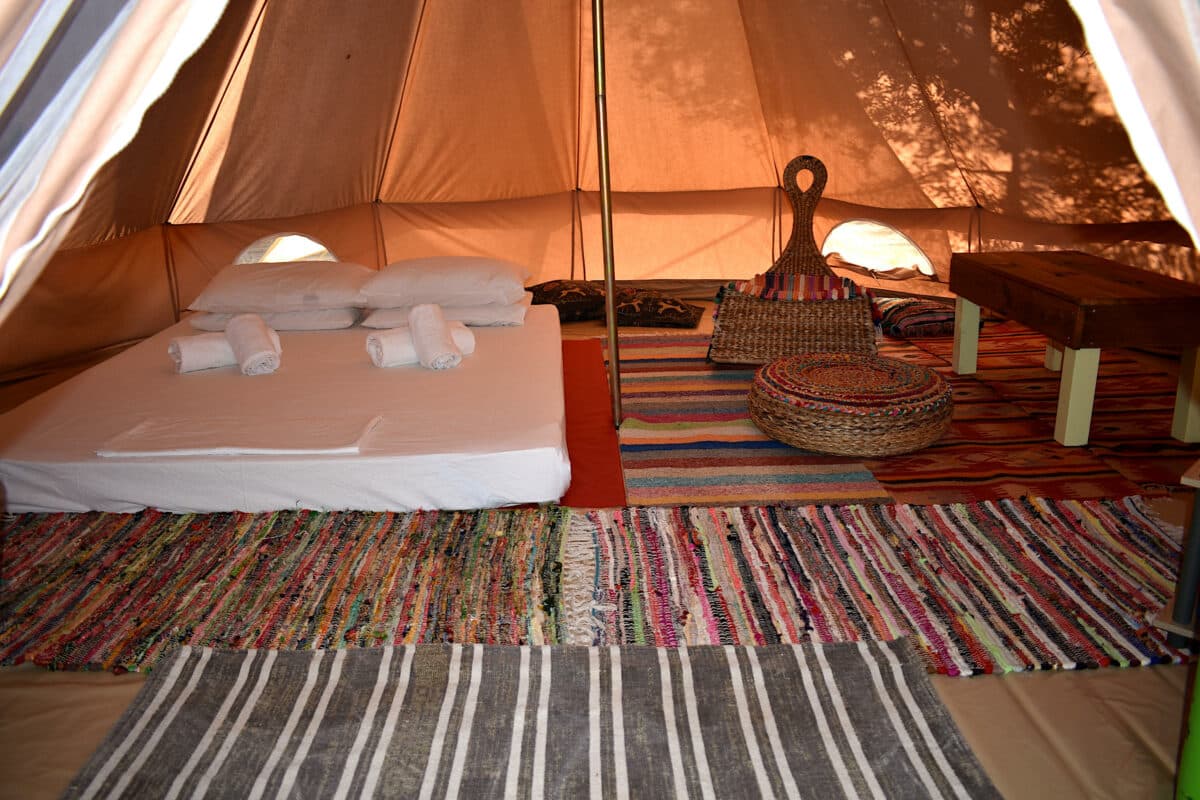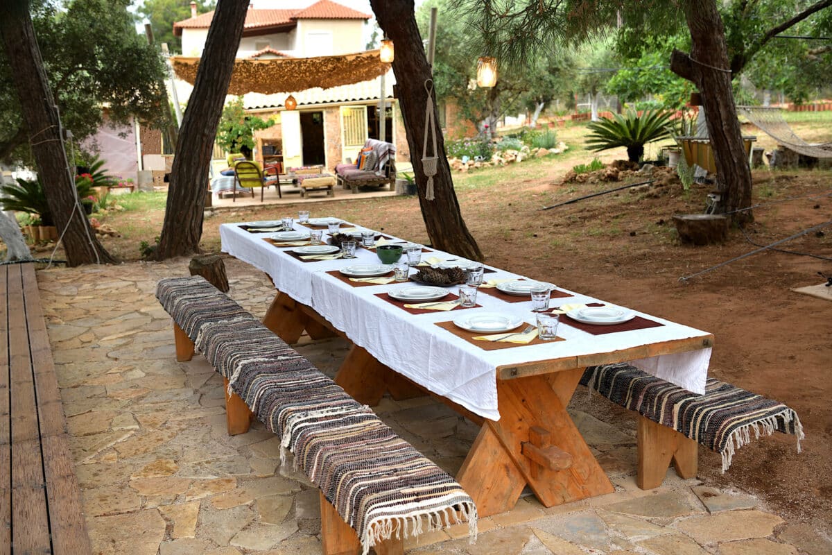 Πώς θα σας φαινόταν να κάνετε διακοπές σε ένα αγρόκτημα; Να ξυπνάτε και μετά από δύο λεπτά περπάτημα να βουτάτε στη θάλασσα; Να βγάζετε τα αυγά από το κοτέτσι και να φτιάχνετε το πρωινό σας; Να κόβετε τα φρούτα και τα λαχανικά σας; Να κοιμάστε σε μια υπέροχη σκηνή κάτω από τα δέντρα; Να σε νανουρίζει ο ήχος των κυμάτων και το θρόισμα των φύλλων; Να κάθεστε σε όλες τις όμορφες γωνιές του αγροκτήματος; Να κοιμάστε στην αιώρα κάτω από τα αστέρια; Να παίζετε επιτραπέζια παιχνίδια με τους φίλους σας; Να μπορείτε να ασχοληθείτε δημιουργικά; Να απολαμβάνετε την απόλυτη σιωπή της νύχτας; Αν θέλετε όλα τα παραπάνω, το αγρόκτημά μας σας περιμένει! Το οικολογικό αγρόκτημα Skiaxtro (4 στρέμματα) είναι ιδανικό για χαλάρωση στη φύση. Απέχει 200 μέτρα από τη θάλασσα και 500 μέτρα από το χωριό Μαραθόπολη. Εναλλακτική διαμονή: Εναλλακτική διαμονή: Εναλλακτική διαμονή: Εναλλακτική διαμονή: Εναλλακτική διαμονή: Εναλλακτική διαμονή. Συνιστάται σε άτομα που αγαπούν τα ζώα και τη φύση. Το κτήμα διαθέτει ελιές και άλλα οπωροφόρα δέντρα. Διαθέτει ένα μικρό πέτρινο σπιτάκι με το δωμάτιο της κουζίνας και ένα χώρο που φιλοξενεί τις χειροποίητες δημιουργίες Skiaxtro. Τρία μπάνια με νιπτήρα και ντους. Διαθέτει έναν υπαίθριο νεροχύτη και δύο υπαίθρια ντους για όποιον το επιθυμεί. Χειροποίητο άνετο σαλόνι με σκιά, τρεις αιώρες στα δέντρα, μια μεγάλη τραπεζαρία 4 μέτρων και τέσσερις υπέροχες σκηνές με διάμετρο 5 μέτρων η καθεμία. Δεν είναι κατάλληλο για παιδιά, καθώς υπάρχουν σημεία όπου θα μπορούσαν να αποτελέσουν κίνδυνο ατυχήματος (π.χ. τα σχοινιά από τις προεξέχουσες σκηνές). Μπροστά από κάθε σκηνή υπάρχει ένα ιδιωτικό σαλόνι. Το αγρόκτημα λειτουργεί ως πολυχώρος ευεξίας, δημιουργικής έκφρασης και εμπειριών. Υπάρχουν μαθήματα γιόγκα, συνεδρίες μασάζ και διάφορα σεμινάρια. Οι επισκέπτες θα έχουν πρόσβαση σε όλους τους χώρους του κτήματος. Τα μπάνια διαθέτουν ντους με ζεστό νερό. Υπάρχουν υπαίθρια ντους για όποιον τα επιθυμεί. Υπάρχει ψυγείο και πετρογκάζι για μαγείρεμα και σκεύη για έως και δώδεκα άτομα. Δεδομένου ότι υπάρχουν μόνο 4 σκηνές ο μεγαλύτερος αριθμός επισκεπτών είναι περίπου 10 άτομα. Από αυτή την καταχώριση μπορείτε να νοικιάσετε δύο σκηνές. Άλλα πράγματα που πρέπει να σημειώσετε! Κάθε σκηνή μπορεί να φιλοξενήσει έναν επιπλέον επισκέπτη με την προσθήκη στρώματος με χρέωση 20 ευρώ ανά ημέρα. Η τραπεζαρία βρίσκεται κάτω από πεύκα. Οι πάσχοντες από αλλεργίες να είναι προσεκτικοί. Στο κτήμα ζουν αρμονικά σκύλοι, γάτες και κότες. Τα σκυλιά και οι κότες περιορίζονται στο δικό τους χώρο.