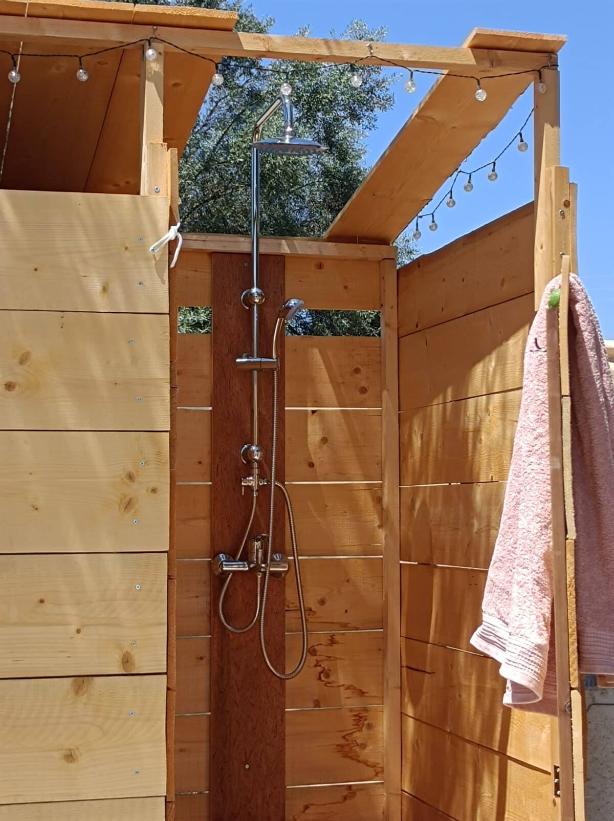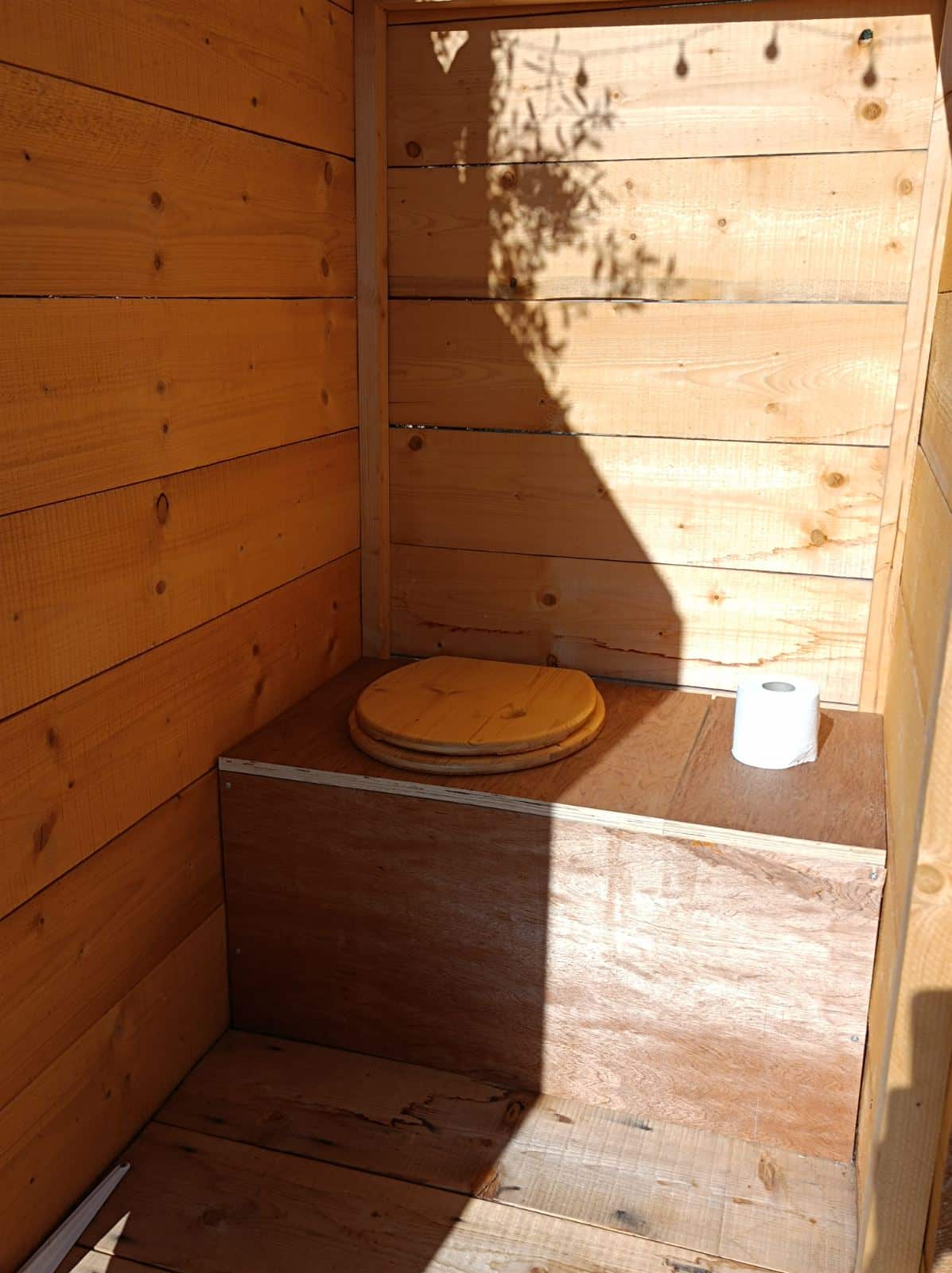 Για οικολογικούς λόγους επιλέξαμε μια τουαλέτα κομποστοποίησης, επειδή έχει λιγότερες επιπτώσεις στο περιβάλλον. Λειτουργεί με ανακυκλώσιμα υλικά όπως χώμα και πριονίδι αντί για νερό. Τα απόβλητα συσσωρεύονται σε ένα δοχείο το οποίο αδειάζουμε καθημερινά εμείς.