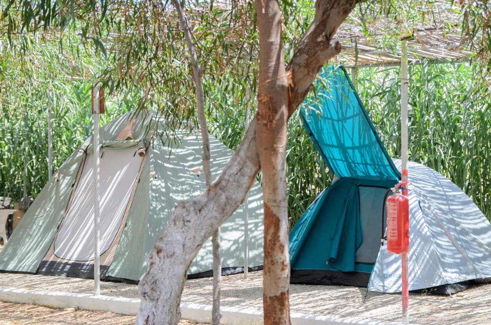 Dentro del camping, encontrará todas las instalaciones que necesita, como zonas sanitarias (wc, duchas), cocina con frigoríficos, electricidad en todas las zonas de tiendas, Wi-Fi y aparcamiento gratuitos y mucho más. Además, podrá degustar platos tradicionales con productos ecológicos griegos de productores locales (aceite de oliva, vino, queso, verduras). El camping también dispone de un bar donde podrá disfrutar de su bebida nocturna.