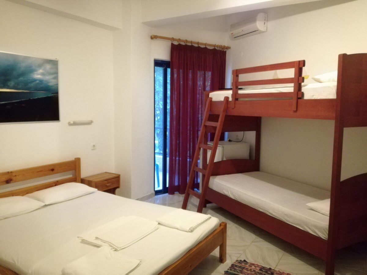 Il Camping Asterias si trova vicino a Kastrosykia, a 22 chilometri da Preveza, nella zona dell'Epiro, nella Grecia nord-occidentale, all'imboccatura del Golfo Ambracio. È il luogo ideale per rilassarsi e godersi le vacanze vicino a una delle più grandi e belle spiagge del Mar Ionio. All'ombra degli ulivi, il nostro campeggio offre spazio per la vostra tenda, roulotte o camper. Sono disponibili anche camere in affitto per i nostri clienti che preferiscono vacanze più confortevoli nel nostro campeggio. Camere con bagno privato, TV, aria condizionata, frigorifero e balcone per due o quattro persone. Internet gratuito è disponibile 24 ore su 24 nell'area ristorante. Le camere Asterias hanno un letto matrimoniale e due letti singoli o a castello e possono ospitare fino a quattro persone. Oltre a un bagno privato, le camere includono asciugamani, biancheria da letto e un frigorifero. Potete cercare sollievo dal caldo con l'aria condizionata nei bungalow del campeggio o rilassarvi nello spazio esterno arredato. Inoltre, il parcheggio è gratuito e incluso nel biglietto d'ingresso!
