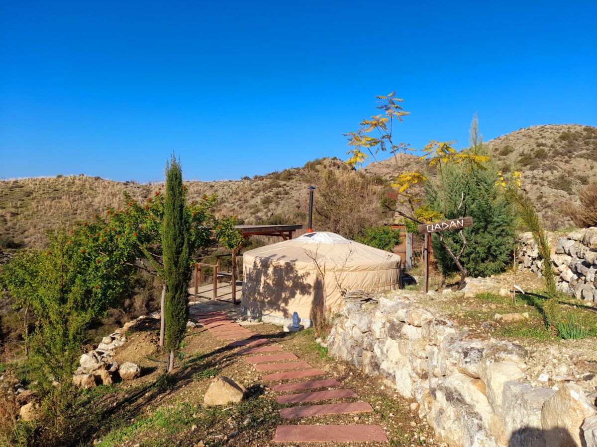Yurts in Cyprus è stato fondato nel 2013 ed è un bed and breakfast unico ed ecologico, situato sulle colline di una valle rurale, appena fuori dal villaggio di Simou, nel distretto di Paphos. Il terreno scosceso è rivolto a ovest, quindi da qualsiasi punto della proprietà si può godere di splendide viste panoramiche. La proprietà segue i principi della sostenibilità e della permacultura, dispone di una fonte d'acqua indipendente e genera il 98% dell'elettricità off-grid da energia eolica e solare.