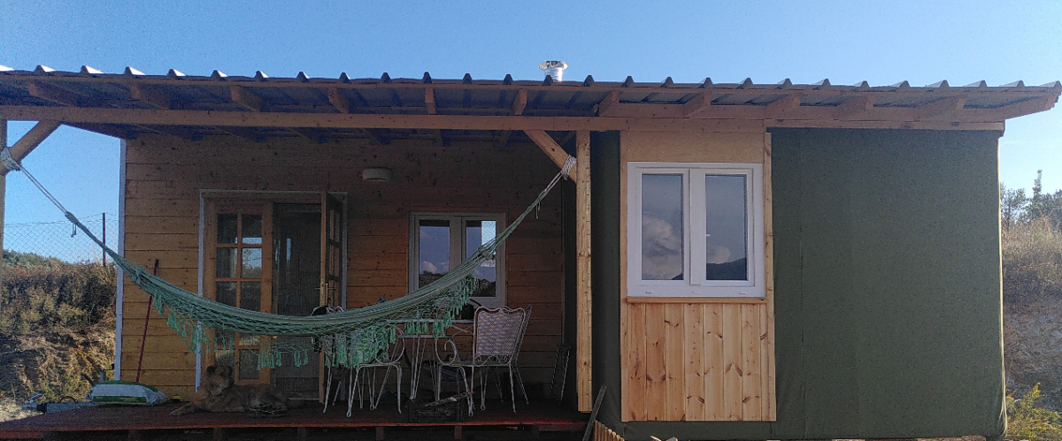 Questa casetta su ruote adatta agli animali domestici è l'ideale per chi vuole lasciare liberi i propri animali, in quanto è dotata di una porta per gatti e di una porta per cani e il terreno circostante è recintato in modo che i cani non possano uscire dall'uliveto senza di voi.