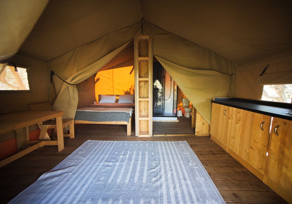 Ervaar de ultieme combinatie van luxe en natuur door te verblijven in een prachtige glamping safaritent in Galatas, aan de overkant van het idyllische eiland Poros in Griekenland. Deze unieke accommodatie ligt te midden van weelderig groen en kijkt uit over het azuurblauwe water van de Saronische Golf, en biedt een onvergetelijk verblijf waar je je verjongd en verbonden met de natuur zult voelen. De ruime safaritent, ontworpen met moderne voorzieningen en stijlvol meubilair, biedt een ongeëvenaarde glamping ervaring. Als je binnenstapt, valt meteen de aandacht voor detail op, van de wanden en plafonds van hoogwaardig canvas tot de houten vloer die een vleugje rustieke charme toevoegt. De tent biedt comfortabel plaats aan twee tot vier gasten en is voorzien van een knus tweepersoonsbed met luxe beddengoed en pluche kussens. Je kunt extra slaapplaatsen regelen met de slaapbank, zodat iedereen een goede nachtrust heeft. Stap naar buiten op je eigen gemeubileerde terras, waar je kunt genieten van het adembenemende uitzicht op de Saronische Golf en de groene heuvels van Poros. Profiteer tijdens je verblijf van de vele activiteiten en attracties in de omgeving. Verken de charmante dorpjes Galatas en Poros, bezoek oude archeologische vindplaatsen of geniet van watersporten zoals zeilen, snorkelen en duiken. De omgeving biedt ook prachtige wandel- en fietspaden voor de avontuurlijke reiziger. Kortom, een glamping safaritent in Galatas, Poros, Griekenland, biedt een luxe en comfortabele ontsnapping in een prachtige natuurlijke omgeving. In deze unieke accommodatie kom je in contact met de natuur terwijl je geniet van moderne gemakken en voorzieningen, waardoor het een onvergetelijke vakantie-ervaring wordt.